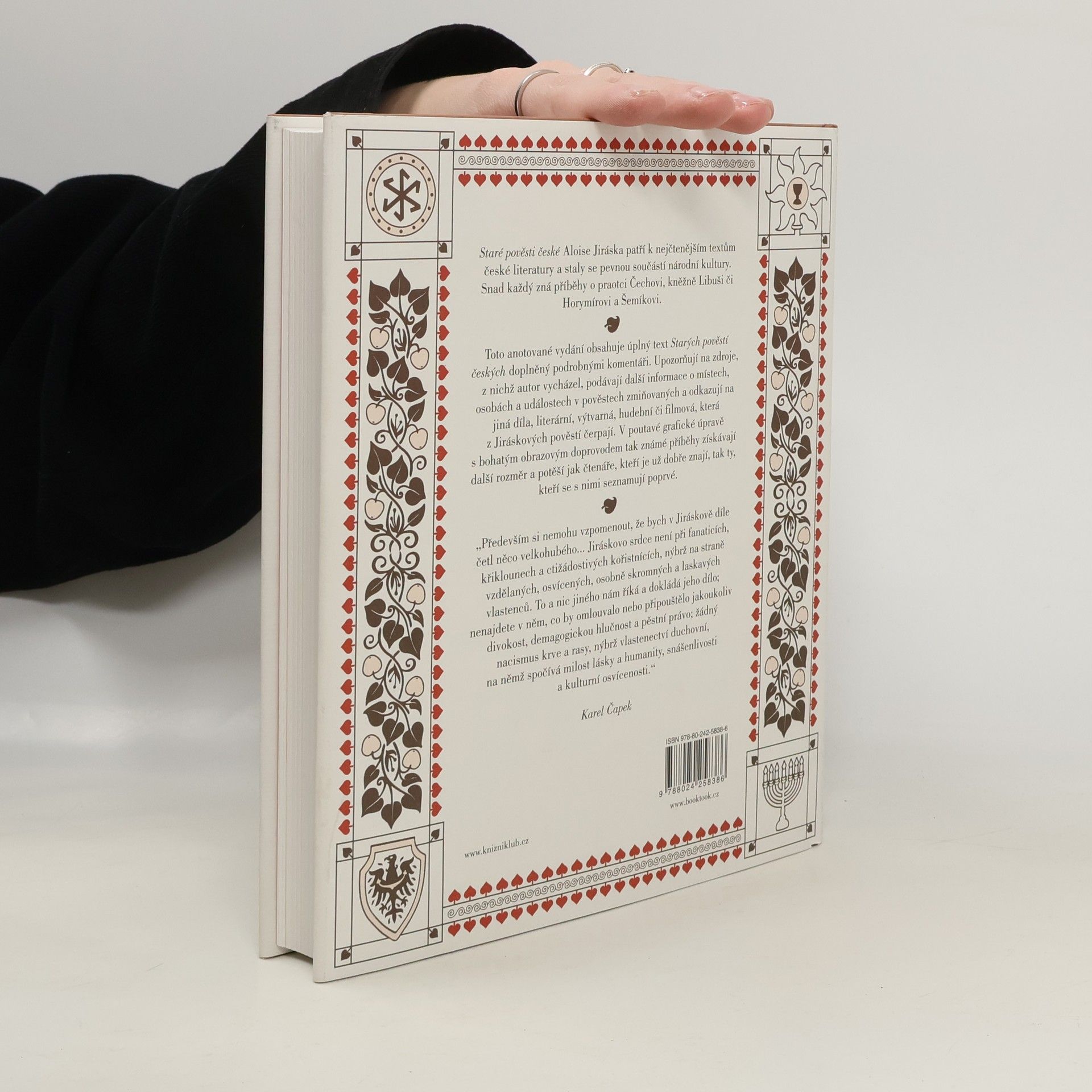 Staré pověsti české Aloise Jiráska patří k nejčtenějším textům české literatury a staly se pevnou součástí národní kultury. Snad každý zná příběhy o praotci Čechovi, kněžně Libuši či Horymírovi a Šemíkovi nebo výroky jako „země zaslíbená, zvěře a ptáků plná, medem oplývající“ a „město vidím veliké, jehož sláva hvězd se bude dotýkat“. Toto anotované vydání obsahuje úplný text Starých pověstí českých doplněný fundovanými komentáři. Ty upozorňují na zdroje, z nichž autor vycházel, podávají podrobnější informace o místech, osobách a událostech v pověstech zmiňovaných, a odkazují na další díla, literární, výtvarná, hudební či filmová, která z Jiráskových pověstí čerpají. V poutavé grafické úpravě s bohatým obrazovým materiálem tak získávají známé příběhy další rozměr a potěší jak čtenáře, kteří je už dobře znají, tak ty, kteří se s nimi seznamují poprvé.