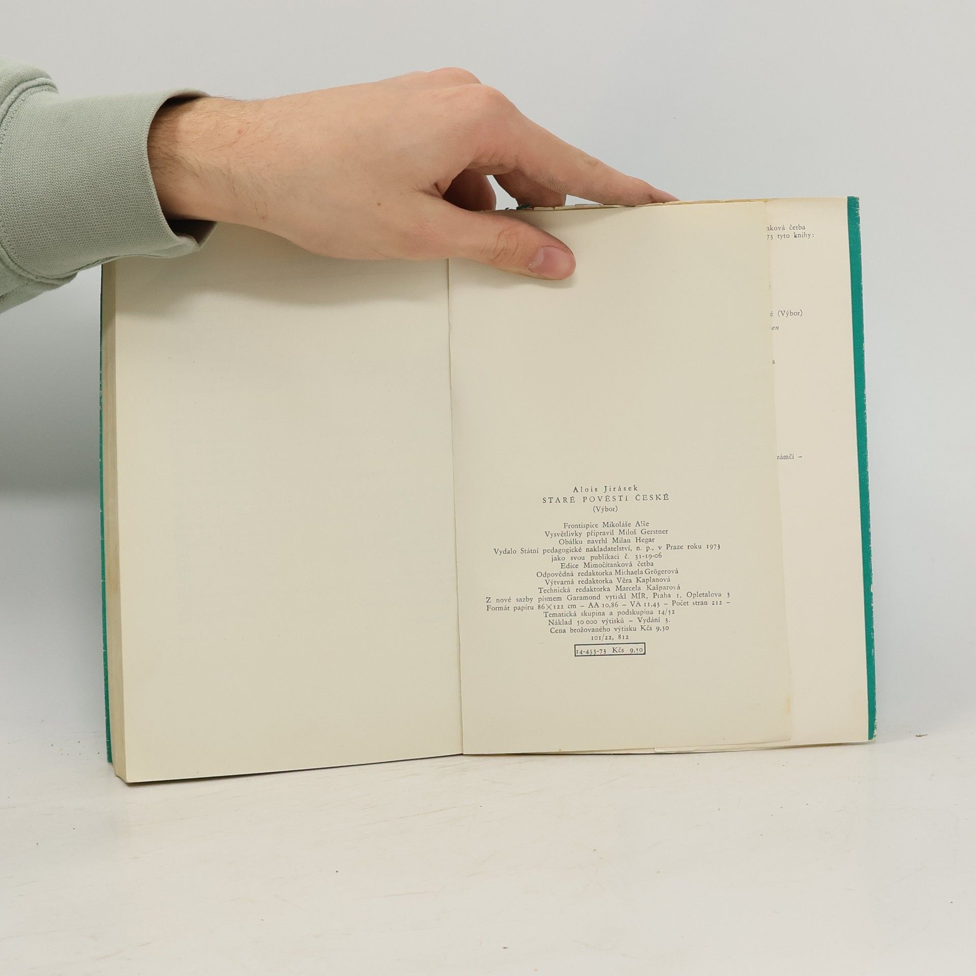 Staré pověsti české popisují události z české historie založené na lidové slovesnosti a historických faktech. Kniha vyšla poprvé již v roce 1894 a s výjimkou období protektorátu vychází opakovaně dodnes. 14-433-73