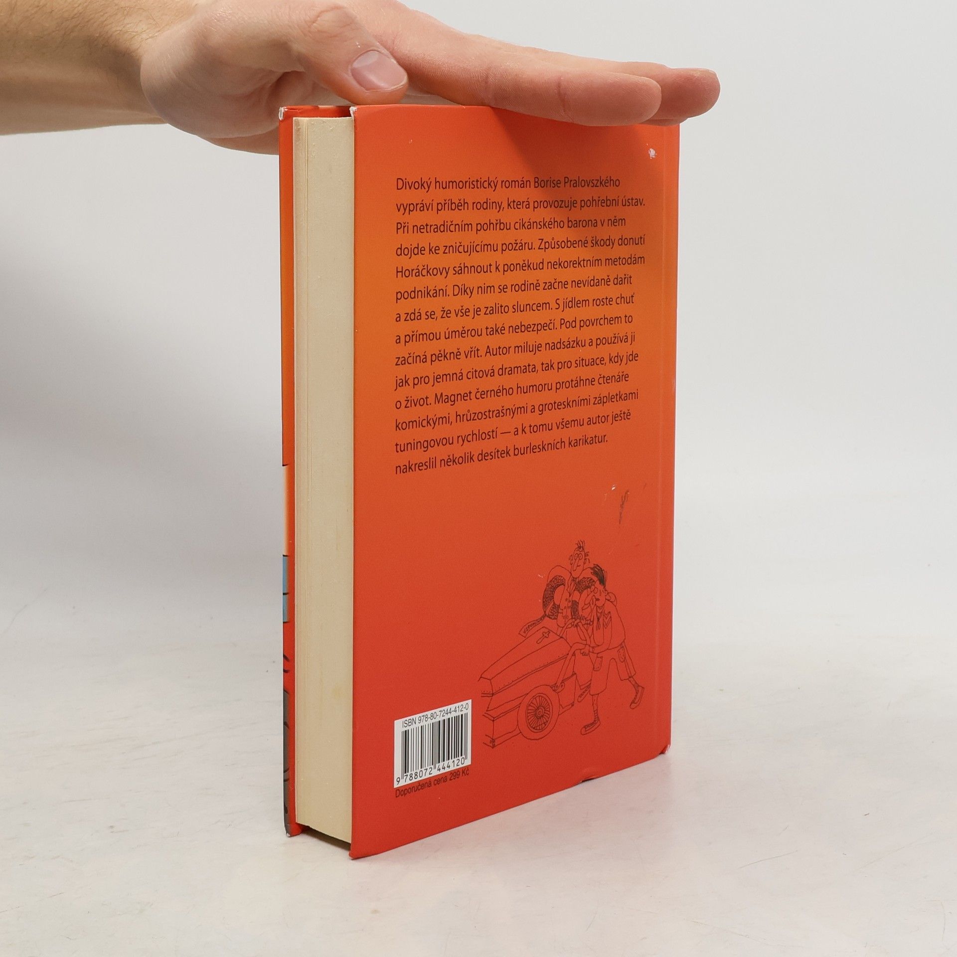 Román se odehrává v pohřebním ústavu, kam žádné lehkovážné vtipkování nepatří, a přesto rodina Horáčkových přitahuje komické situace jako magnet a každou katastrofu se jim absurdním způsobem podaří obrátit ve výhru přesně podle pravidla, že život se nemá brát příliš vážně, protože stejně skončí na hřbitově. Černý humor Borise Pralovszkého je drsný i něžný stejně jako jeho ilustrace ke knize a smích čtenáře vždycky osvobodí, když se děj náhle splaší a hlavní hrdinové se ocitnou v neřešitelné situaci.