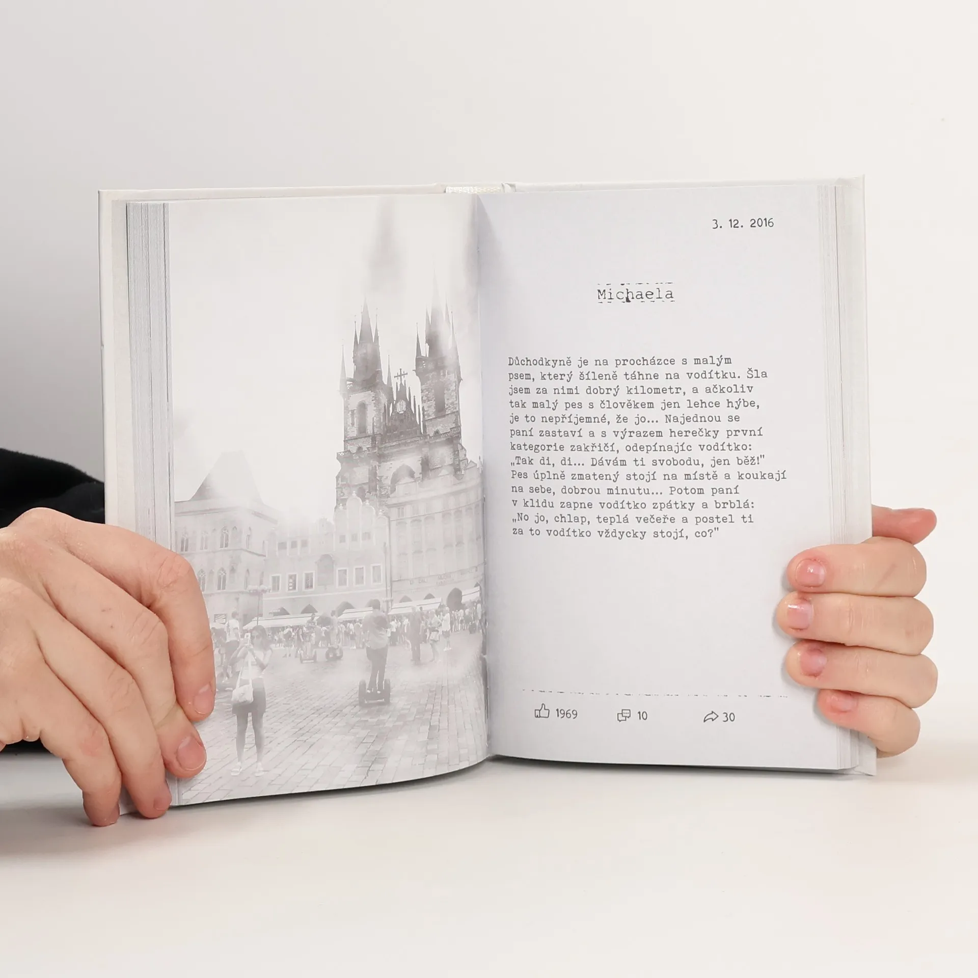 Facebooková skupina Odposlechnuto v Praze zachycuje běžné i jedinečné příhody lidí pohybujících se v hlavním městě. Skupina má aktuálně více než 90 000 členů, kteří ročně sdílejí tisíce veselých „odposlechnutí” plných dětské upřímnosti, zajímavých mezilidských zápletek či životních příběhů, jež vygradovaly do mnohdy až naprosto nečekaných a neuvěřitelných situací. Kniha obsahuje ty nejlepší příspěvky a hlášky sdílené ve facebookové skupině Odposlechnuto v Praze.