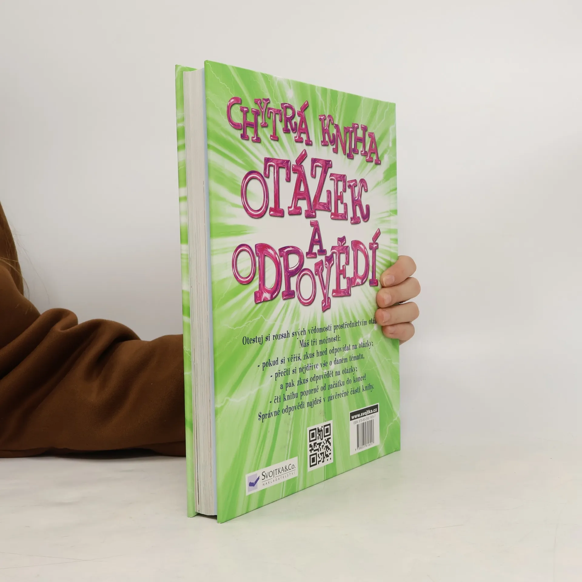 V této knize najdeš více než 2000 otázek a odpovědí na procvičení mozkových závitů. Jsou z různých oblastí - přírody, zeměpisu, historie, sportu a umění i z oblasti vědy a vynálezů. Otestuj si s ní rozsah svých vědomostí! Pokud si věříš, zkus hned na otázky odpovědět. Pokud ne, tak si knihu pečlivě prostuduj a pak teprve odpovídej. Kontrolní odpovědi najdeš v závěrečné části knihy. Zkus to, je to jednoduché jako napočítat do tří!