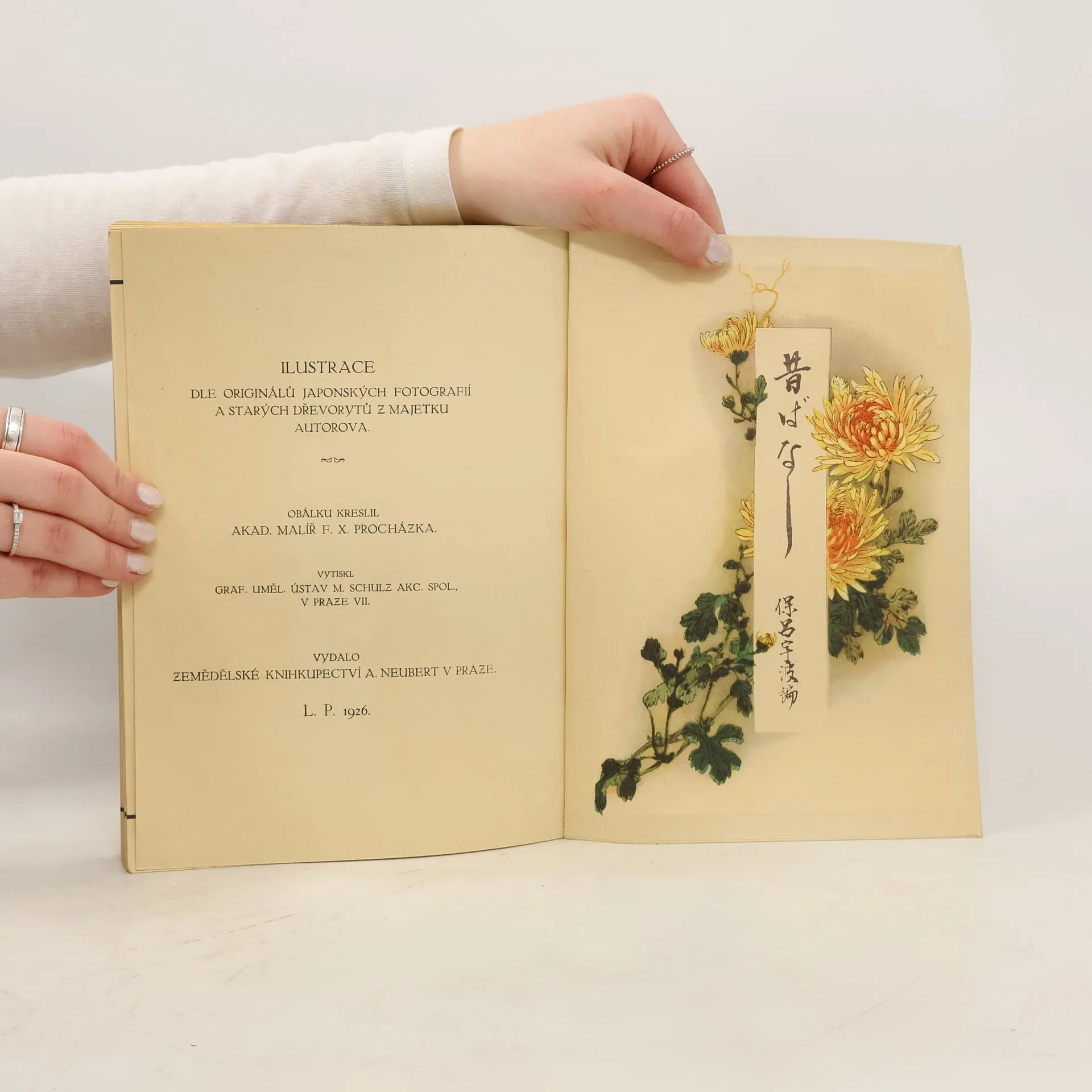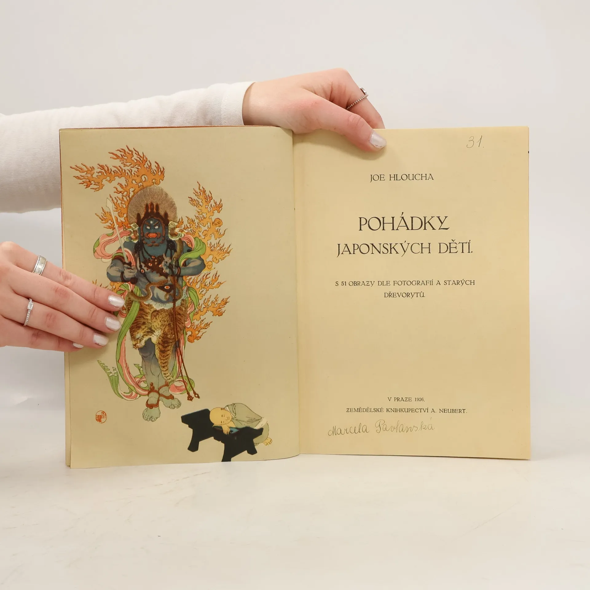 Vyprávění o Japonsku (20. léta 20. stol. ) doplňuje 15 krátkých pohádek s 51 obrazy dle fotografií a starých dřevorytů, obálku kreslil František Xaver Procházka.
