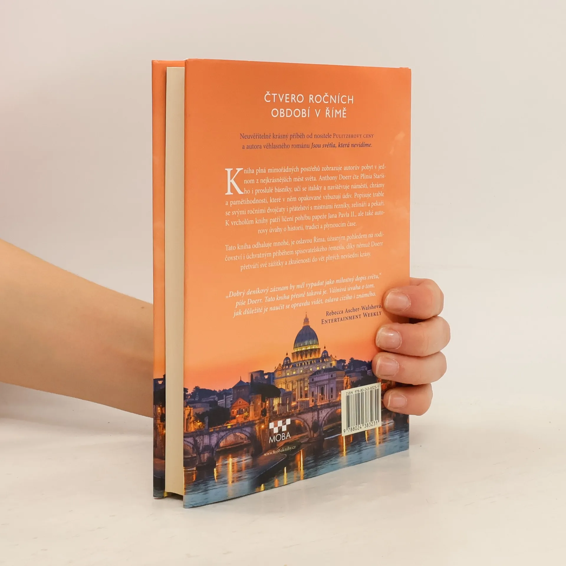 Výjimečná kniha – je plná mimořádných postřehů a popisuje Doerrova dobrodružství v jednom z nejúchvatnějších měst na světě. Anthony čte Plinia, Danta a Keatse ‒ staré kronikáře Říma ‒ a navštěvuje náměstí, chrámy a pamětihodnosti, o kterých tito muži psali. Účastní se vigilie umírajícího Jana Pavla II. a v prosinci vezme svá dvojčata do Pantheonu, aby jim ukázal, jak dovnitř okulem padá sníh. Společně se svojí rodinou se spřátelí s místními řezníky, zelináři a pekaři, jejichž hlučné příběhy a osobité výchovné rady jsou stejně neodolatelné jako samotný Řím. Tato osobní kniha odhaluje mnohé, je oslavou Říma, úžasným novým pohledem na rodičovství a úchvatným příběhem spisovatelského řemesla ‒ díky němuž Doerr přetváří své zážitky a zkušenosti do vět.