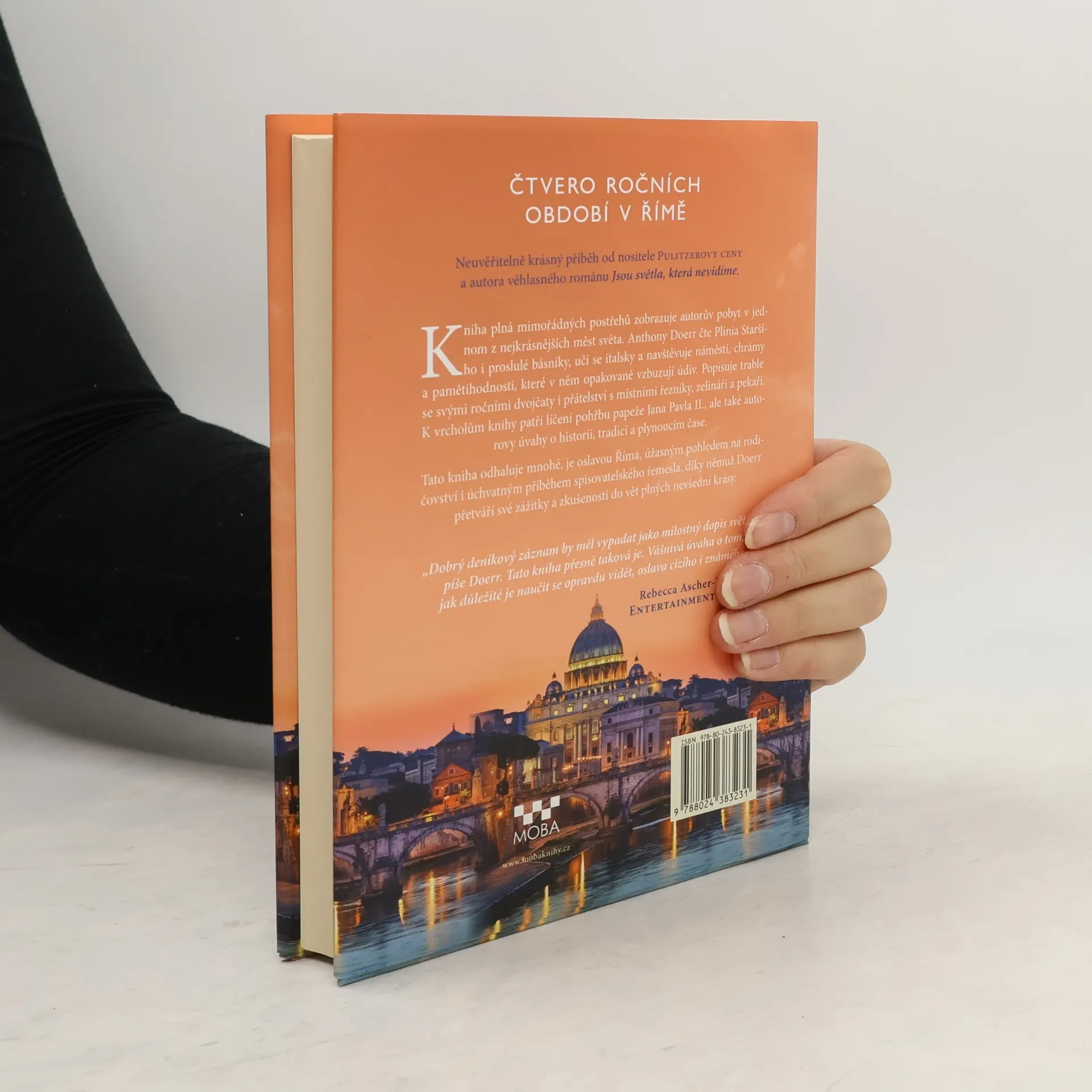 Výjimečná kniha – je plná mimořádných postřehů a popisuje Doerrova dobrodružství v jednom z nejúchvatnějších měst na světě. Anthony čte Plinia, Danta a Keatse ‒ staré kronikáře Říma ‒ a navštěvuje náměstí, chrámy a pamětihodnosti, o kterých tito muži psali. Účastní se vigilie umírajícího Jana Pavla II. a v prosinci vezme svá dvojčata do Pantheonu, aby jim ukázal, jak dovnitř okulem padá sníh. Společně se svojí rodinou se spřátelí s místními řezníky, zelináři a pekaři, jejichž hlučné příběhy a osobité výchovné rady jsou stejně neodolatelné jako samotný Řím. Tato osobní kniha odhaluje mnohé, je oslavou Říma, úžasným novým pohledem na rodičovství a úchvatným příběhem spisovatelského řemesla ‒ díky němuž Doerr přetváří své zážitky a zkušenosti do vět.