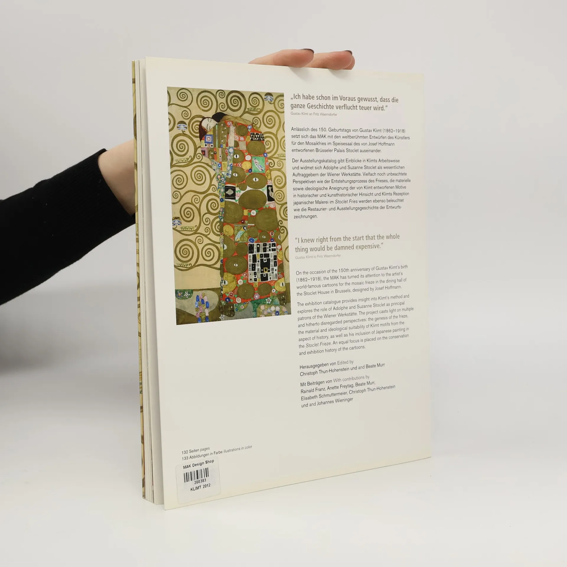 Das Palais Stoclet in Brüssel wurde 1905 von Adolphe Stoclet in Auftrag gegeben und als Gesamtkunstwerk von Künstlern und Freunden der Wiener Werkstätte ausgestattet. Gustav Klimt (1862-1918) gestaltete einen dreiteiligen, aus 15 Teilelementen bestehenden Mosaikfries für den Speisesaal. Klimts berühmte Entwürfe, darunter die Motive Erwartung, Erfüllung und Lebensbaum, entstanden in den Jahren 1910/1911. Sehr exakt übermittelte er der Wiener Werkstätte seine Vorstellungen von Material, Farbnuancen und Oberflächenreflexen. Zum Abschluss der mehrjährigen Restaurierungsarbeiten vollzieht die Publikation nun Klimts Arbeitsweise nach und vergleicht seine Anweisungen mit den ausgeführten Mosaikteilen und Arbeitsrelikten der Wiener Werkstätte. Restaurierung und Konservierung des Frieses werden dokumentiert und erläutert. Die Aneignung der Motive in historischer und kunsthistorischer Hinsicht wird ebenso beleuchtet wie Klimts Rezeption japanischer Malerei. Ausstellung: MAK, Wien 21.3.-15.7.2012