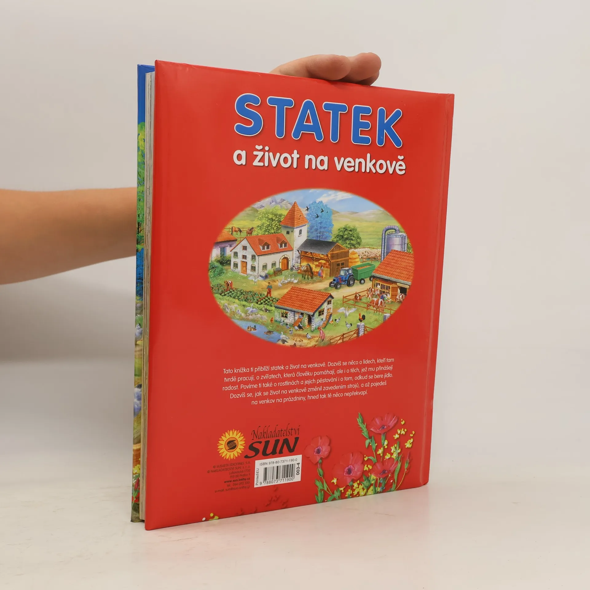 Tato knížka ti přiblíží statek a život na venkově. Dozvíš se něco o lidech, kteří tam pracují, o zvířatech, která člověku pomáhají při práci, ale i o těch, jež mu přinášejí radost. Povíme ti také o rostlinách a jejich pěstování i o tom, odkud jak se vyrábí některé potraviny. Dozvíš se, jak se život na venkově změnil zavedením strojů, a až pojedeš na venkov třeba na prázdniny, tak tě hned tak něco nepřekvapí.
