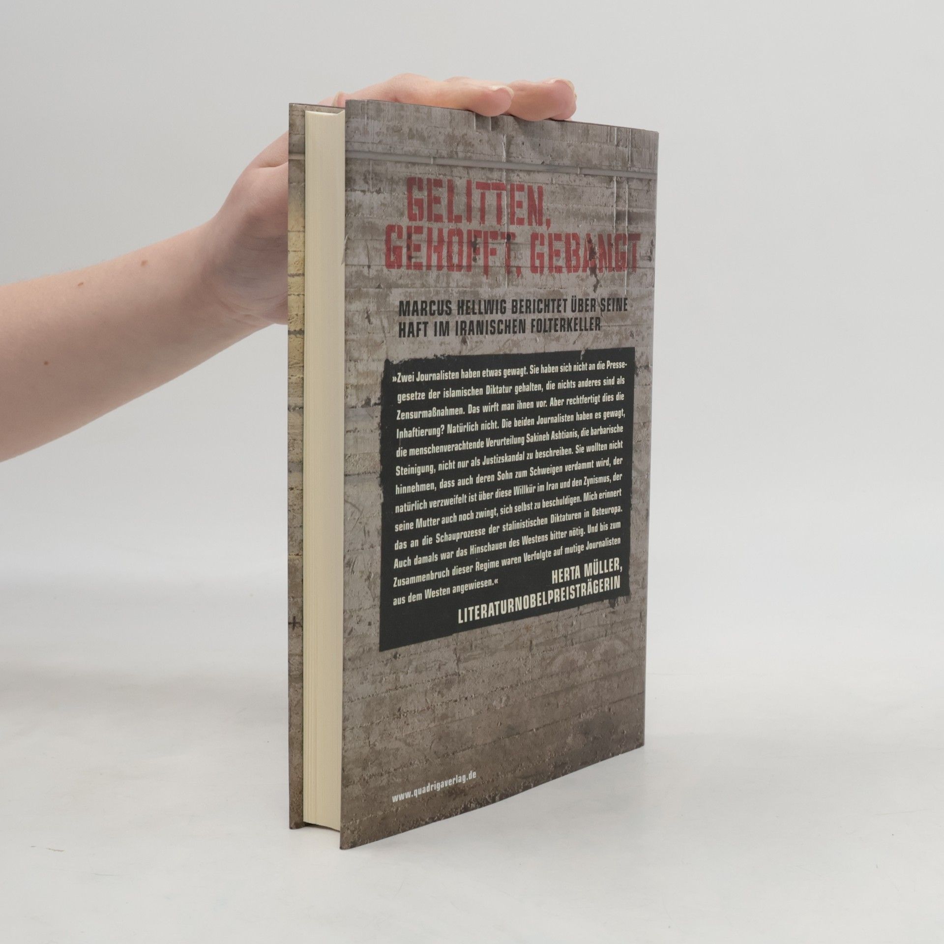 Der Reporter Marcus Hellwig und ein Fotograf wurden im Iran verhaftet, als sie das Schicksal der zum Tod durch Steinigung verurteilten Iranerin Sakineh Ashtiani recherchierten. Ihre Haft wurde weltweit in Politik und Medien als Willkürakt des iranischen Terrorregimes verurteilt. Kein Sonnenlicht, Schlafentzug und die Schmerzensschreie der gefolterten Mitgefangenen zerren an den Nerven des Journalisten, in stundenlangen Verhören wird er von seinen Peinigern misshandelt. Sie wollen ein Geständnis erpressen, um ihn als Spion zu verurteilen. Nach engagierter Intervention von westlichen Medien und Politikern konnte Außenminister Guido Westerwelle den Reporter und den Fotografen nach 132 Tagen Haft schließlich nach Deutschland ausfliegen. In die Freiheit. Dieses Buch ist auch ein fesselnder Bericht über die Ungewissheit, über die Angst in auswegloser Lage: Was werden sie mit mir machen? Werde ich jemals meine Familie, meine achtjährige Tochter wiedersehen? Lange Gespräche mit anderen politischen Gefangenen geben Marcus Hellwig tiefe Einblicke in das System der iranischen Gewaltherrschaft.