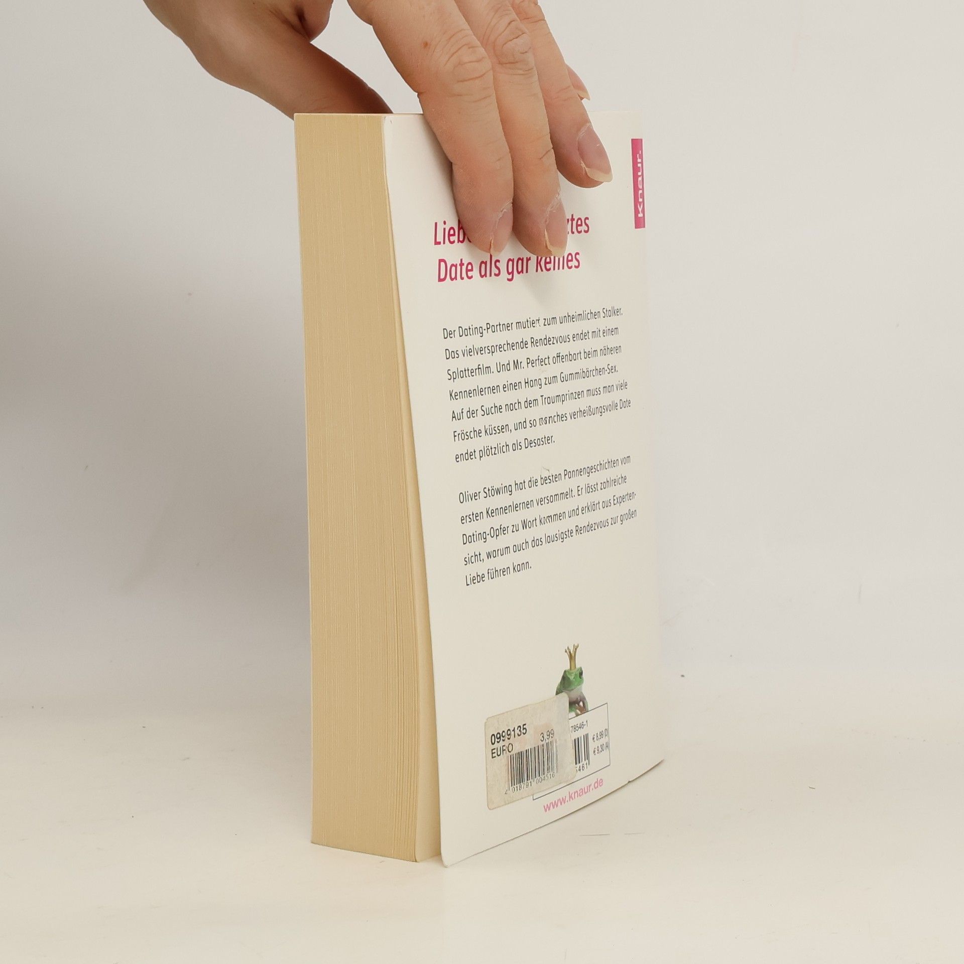 Auf der Suche nach dem Traumprinzen muss man viele Frösche küssen, und so manches vielversprechende Date endet plötzlich als Desaster. Oliver Stöwing hat die besten Pannengeschichten vom ersten Kennenlernen versammelt. Er lässt zahlreiche Dating-Opfer zu Wort kommen und erklärt aus Expertensicht, ob und wie die Situation zu retten gewesen wäre. Für Schadenfrohe und alle, die trotz missglücktem Date die Hoffnung nicht aufgeben.