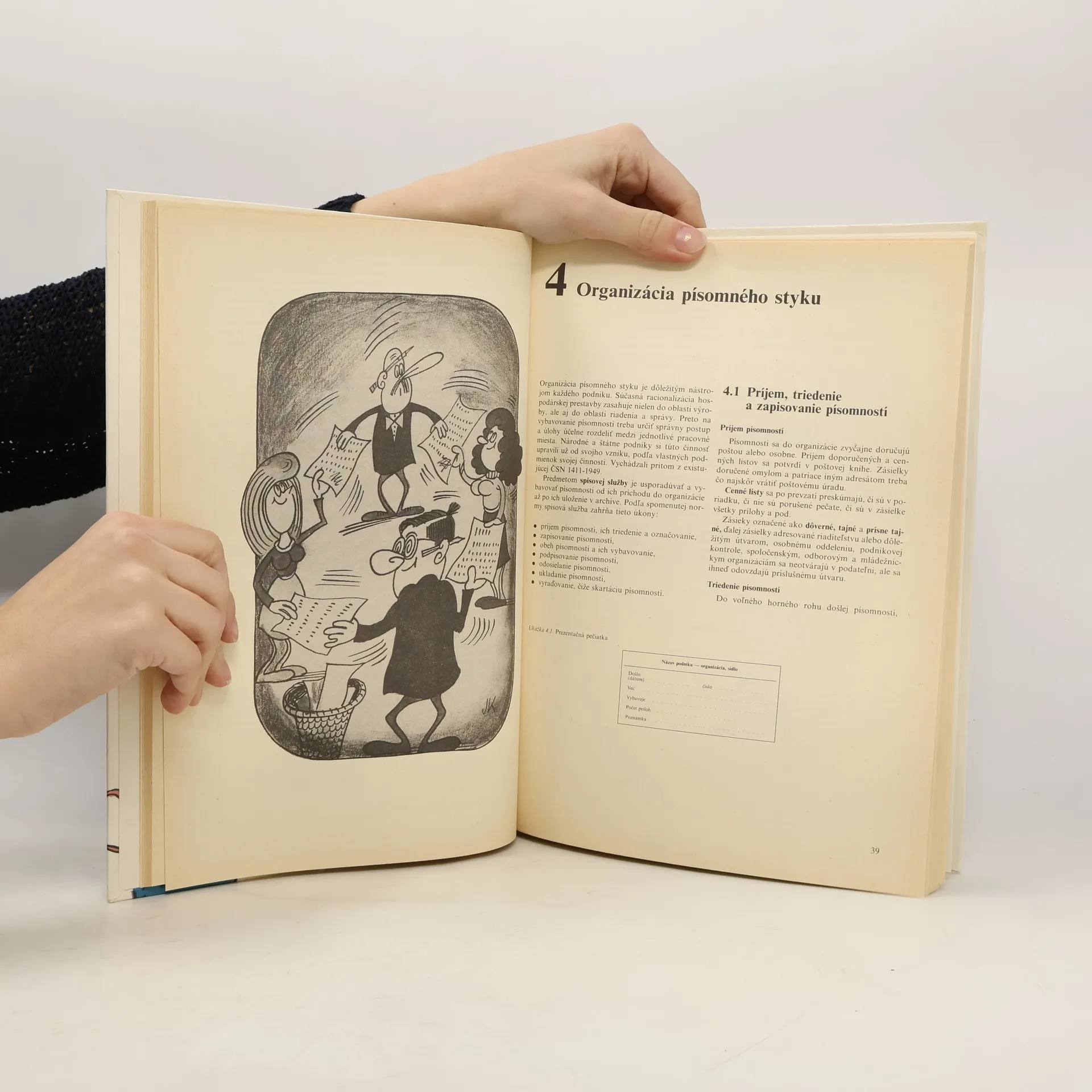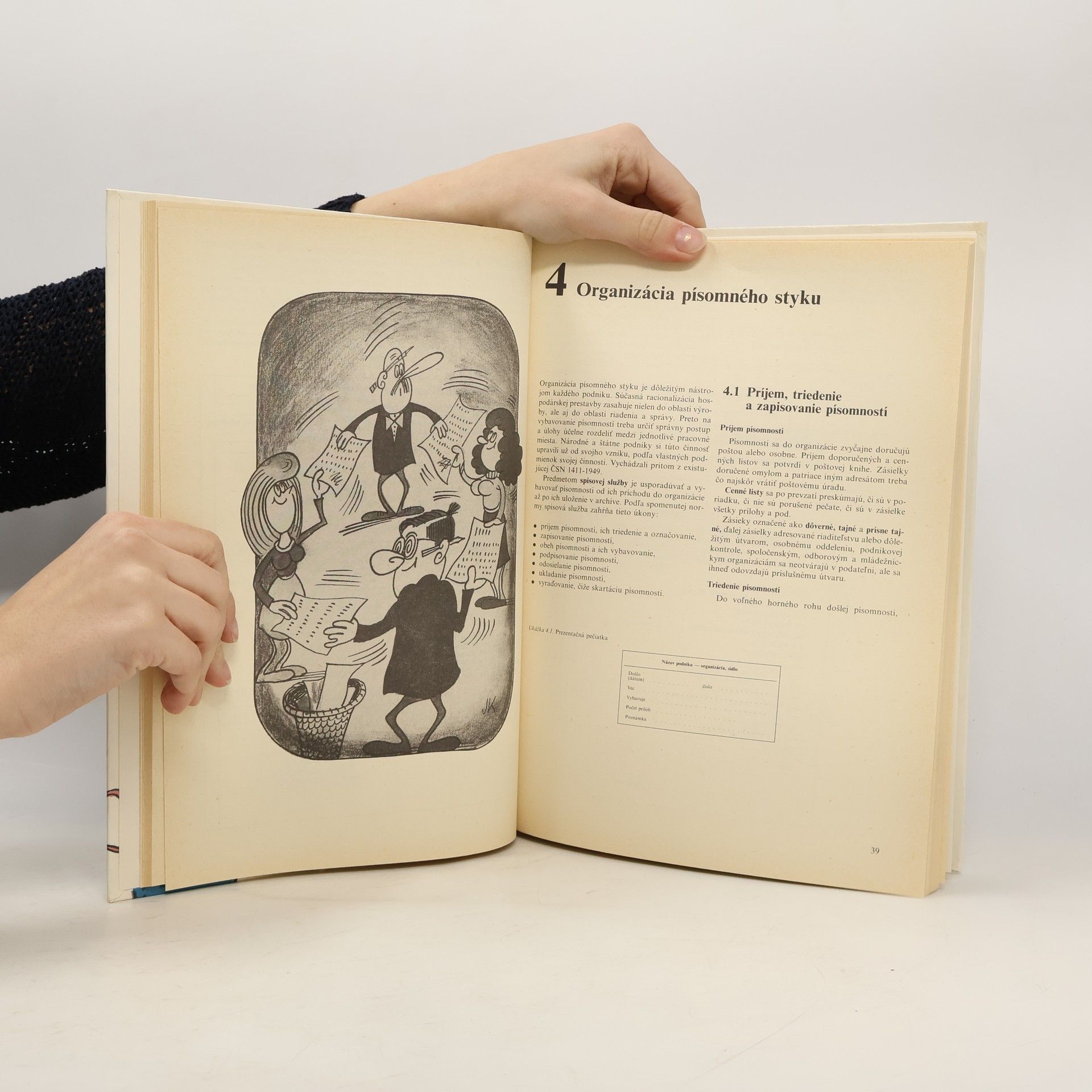 Kniha Vám spoľahlivo pomôže osvojiť si spôsob správneho formálneho aj vecného korešpondovania. Kapitoly: Stručne o význame písomného styku, Normalizovaná úprava písomností, Formuláre, Organizácia písomného styku, Spisový poriadok, Tvorba podnikového listu, Korektorské značky, Písomnosti z podnikovej praxe, Písomnosti v pracovnoprávnych vzťahoch, Osobné listy, Autorizované spracovanie textov, Stručný slovník odborných výrazov v administratíve, Najdôležitejšie normy pri tvorbe písomností. Prvé vydanie. Cena knihy v čase vydania: 35.- Kčs.