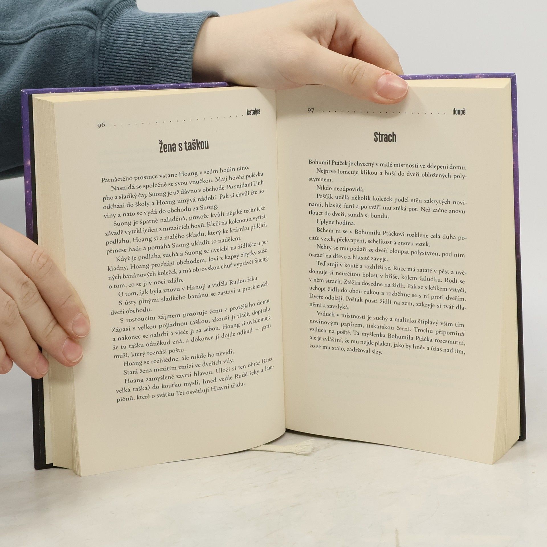 Román o míjení a mimoběžných cestách Po mimořádně úspěšném románu Němci přichází Jakuba Katalpa s propracovaným mnohovrstevnatým románem ze současnosti. Květa je po manželově smrti sužována pocitem samoty a neužitečnosti. Ve sklepě svého domu proto vybuduje malou místnost — doupě — a čeká na návštěvníka, kterého by do ní mohla zavřít a vyprávět mu svůj životní příběh. Zatímco Květa opečovává svého vězně, v Americe umírá na rakovinu Akiko Ikedaová. Dochází sice na chemoterapii, ta však nezabírá a její manžel postupně ztrácí víru v manželčino uzdravení. Anh Thi Hoang opouští rodný Vietnam a vydává se na dalekou cestu do Prahy, aby pomohl dceři s vedením domácnosti a malého obchodu. Naráží však na odcizení, nejen kulturní, ale také rodinné a generační.