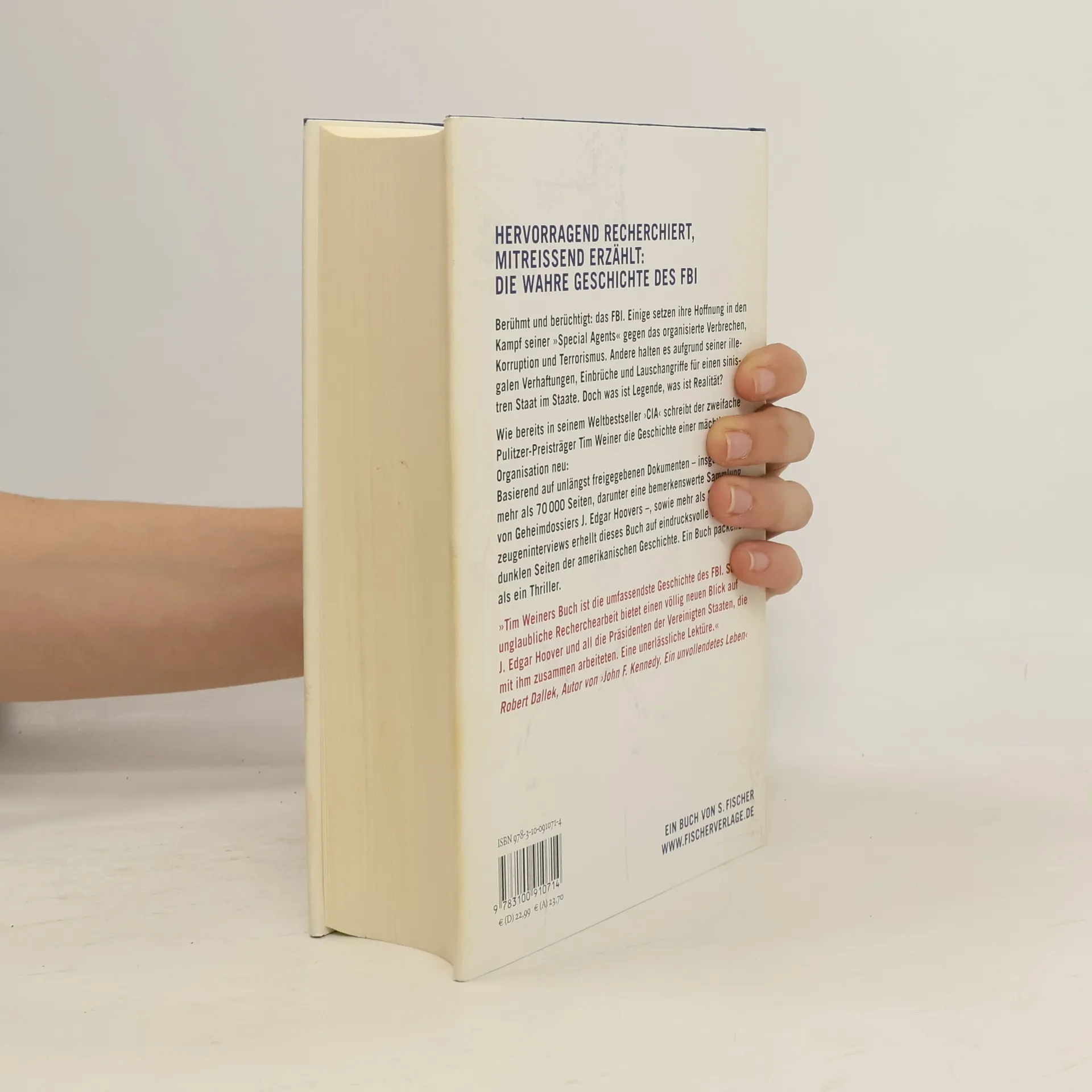 Berühmt und berüchtigt: das FBI. Einige setzen ihre Hoffnung in den Kampf seiner „Special Agents“ gegen das organisierte Verbrechen, Korruption und Terrorismus. Andere halten es aufgrund seiner illegalen Verhaftungen, Einbrüche und Lauschangriffe für einen sinistren Staat im Staate. Doch was ist Legende, was ist Realität? Wie bereits in seinem Weltbestseller ›CIA‹ schreibt der zweifache Pulitzer-Preisträger Tim Weiner die Geschichte dieser mächtigen Organisation neu. Sein glänzend recherchiertes und spannend geschriebenes Buch, das u. a. auf bislang unbekannten Quellen basiert, erhellt auf eindrucksvolle Weise dunkle Seiten der amerikanischen Geschichte und stellt die Machenschaften des FBI in einen profunden politischen Kontext. Ein Buch packender als ein Thriller. „Tim Weiners Buch ist die umfassendste Geschichte des FBI. Seine unglaubliche Recherchearbeit bietet einen völlig neuen Blick auf J. Edgar Hoover und all die Präsidenten der Vereinigten Staaten die mit ihm zusammen arbeiteten. Eine unerlässliche Lektüre für jeden, dem Bürgerrechte wichtig sind.“ Robert Dallek, Autor von „John F. Kennedy. Ein unvollendetes Leben“