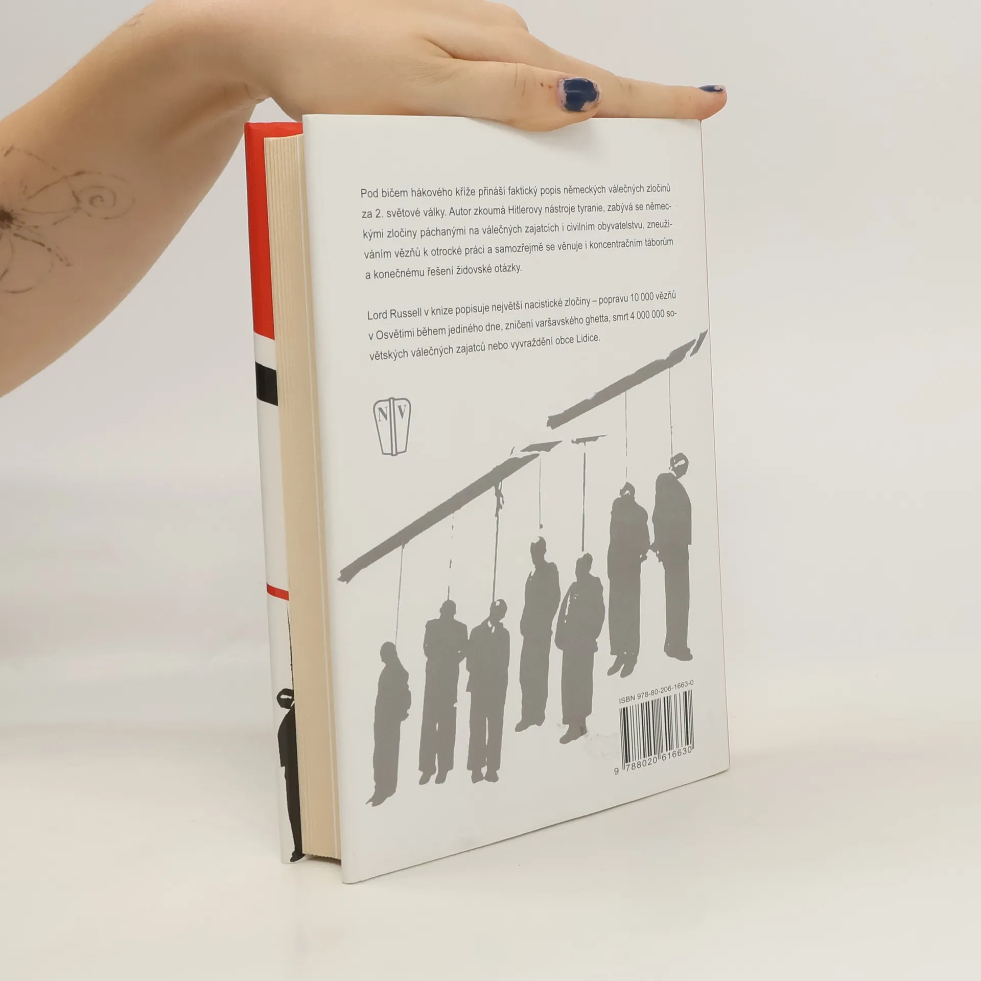 Kniha Pod bičem hákového kříže přináší faktický popis německých válečných zločinů za druhé světové války. Autor zkoumá Hitlerovy nástroje tyranie a německé zločiny páchané na válečných zajatcích i civilním obyvatelstvu a věnuje se také koncentračním táborům a konečnému řešení židovské otázky. Lord Russell v knize zkoumá největší nacistické zločiny – popravu 10 000 vězňů v Osvětimi během jediného dne, zničení varšavského ghetta, smrt 4 000 000 sovětských válečných zajatců či lynčování spojeneckých letců.