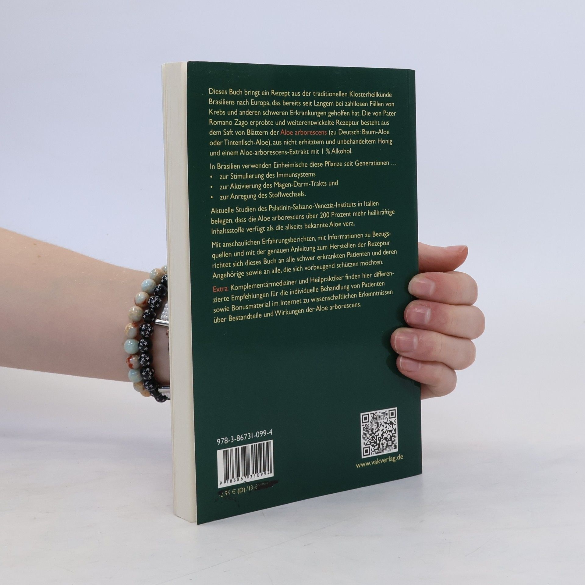 Das Buch bringt ein Rezept aus der traditionellen Klosterheilkunde Brasiliens nach Europa, das bereits seit Langem bei zahllosen Fällen von Krebs und anderen schweren Erkrankungen geholfen hat. Die von Pater Romano Zago erprobte und weiterentwickelte Rezeptur besteht aus dem Saft des ganzen Blattes der Aloe arborescens (zu Deutsch: Baum-Aloe oder Tintenfisch-Aloe), aus nicht erhitztem und unbehandeltem Honig und einem Aloe-arborescens-Extrakt mit 1% Alkohol. In Brasilien verwenden die Einheimischen diese Pflanze seit Generationen zur Stimulierung des Immunsystems, zur Anregung des Magen-Darm-Trakts und des Stoffwechsels. Untersuchungen unabhängiger Labore haben ergeben, dass der in dieser Rezeptur verwendete Saft der Aloe arborescens das gesamte Spektrum an sekundären Pflanzenstoffen, Mono- und Polysacchariden, Mineralstoffen sowie zusätzlichen pflanzlichen Nährstoffen enthält. Aktuelle Studien des Palatinin-Salzano-Venezia-Instituts in Italien belegen, dass die Aloe arborescens sogar über 200 Prozent mehr phytotherapeutische Inhaltsstoffe verfügt als die allseits bekannte Aloe vera. Mit anschaulichen Erfahrungsberichten und der genauen Anleitung zum Herstellen der Rezeptur richtet sich dieses Buch an alle schwer erkrankten Patienten und deren Angehörige sowie an Heilpraktiker und Komplementärmediziner, aber auch an alle, die sich vorbeugend schützen möchten.