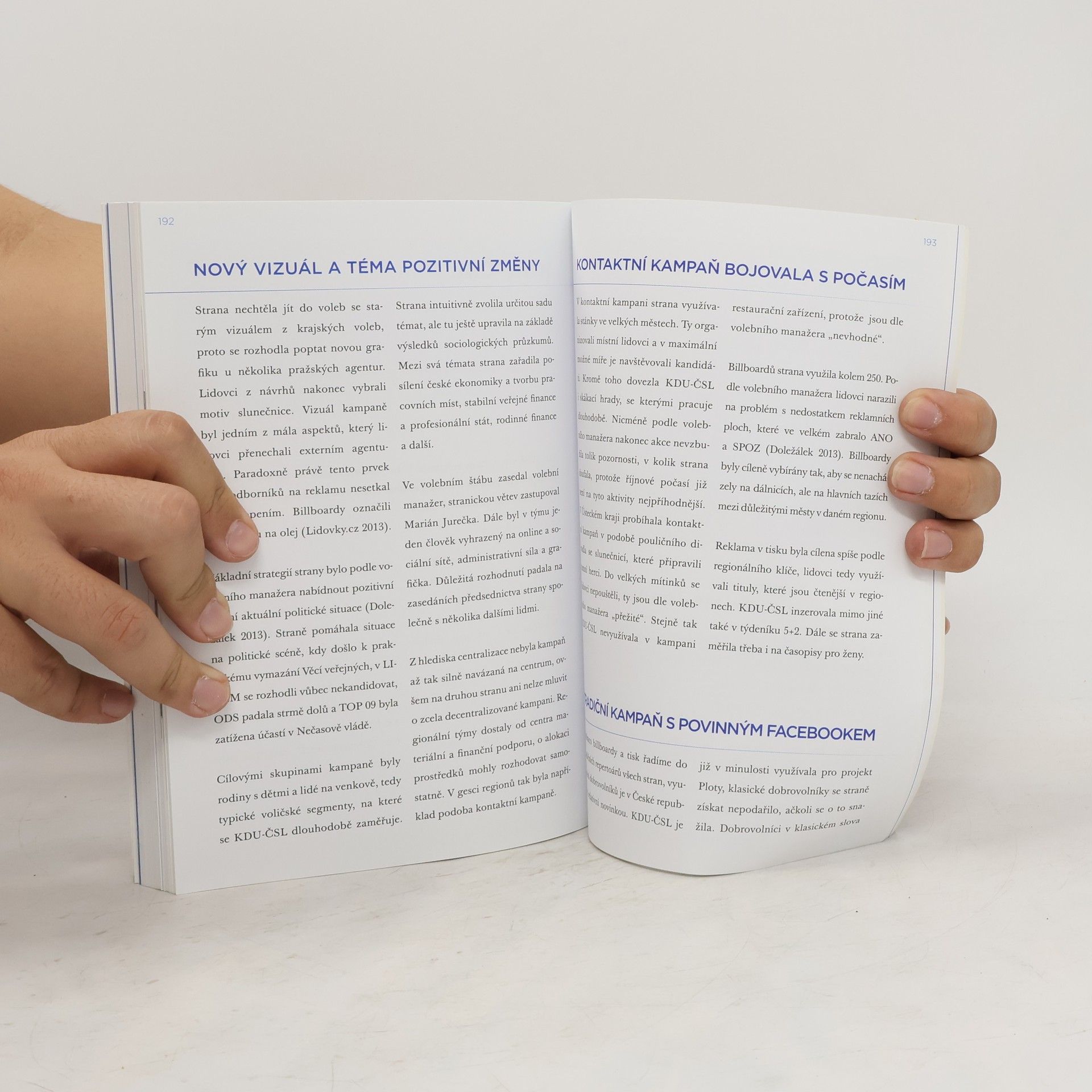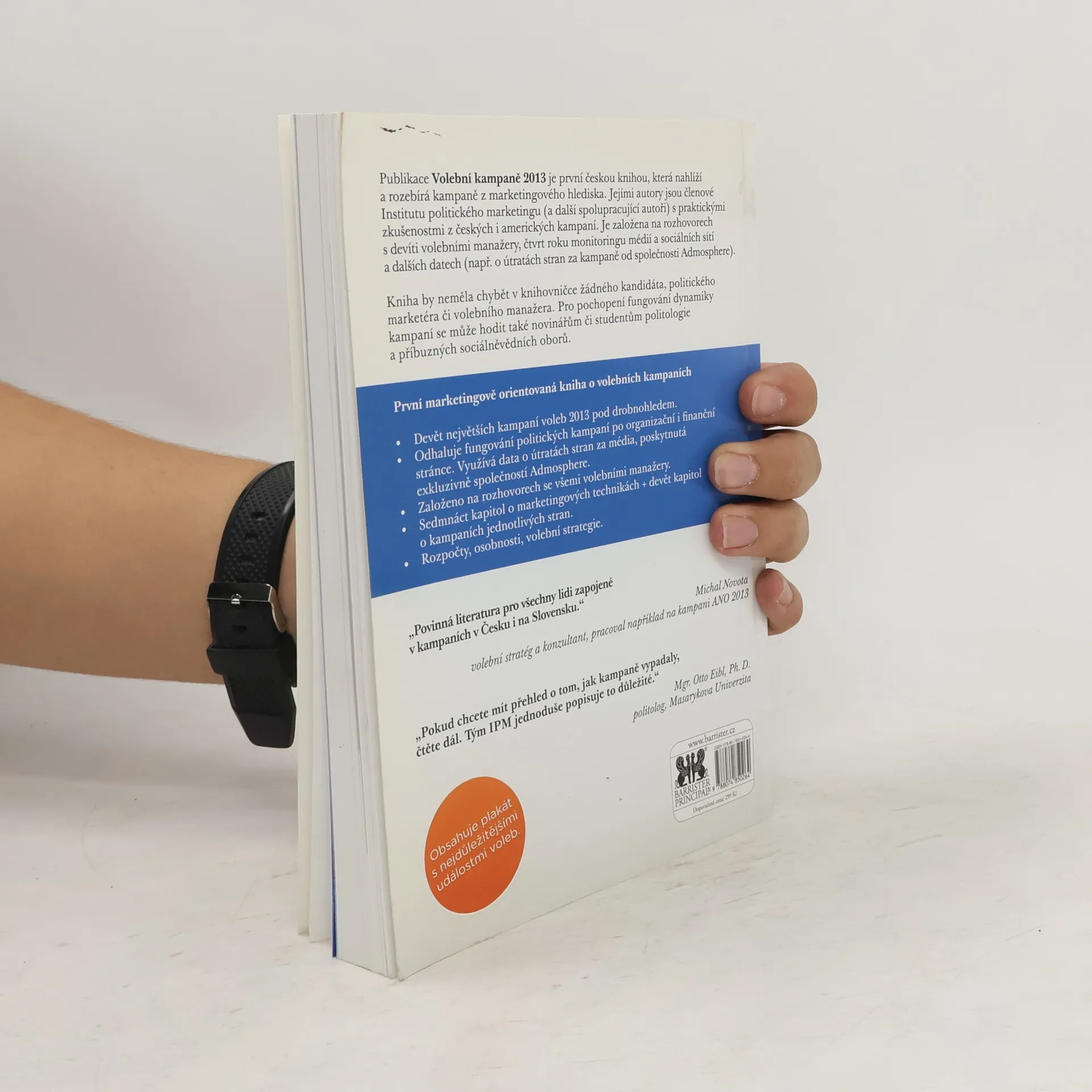 Strategie, osobnosti, rozpočty. Devět největších kampaní pod drobnohledem. Český politický marketing, jak jste ho ještě nepoznali. Publikace Volební kampaně 2013 je první českou knihou, která nahlíží a rozebírá kampaně z marketingového hlediska. Jejími autory jsou členové Institutu politického marketingu (a další spolupracující autoři) s praktickými zkušenostmi z českých i amerických kampaní. Je založena na rozhovorech s devíti volebními manažery, čtvrt roku monitoringu médií a sociálních sítí a dalších datech (např. o útratách stran za kampaně od společnosti Admosphere). Kniha by neměla chybět v knihovničce žádného kandidáta, politického marketéra či volebního manažera. Pro pochopení fungování dynamiky kampaní se může hodit také novinářům či studentům politologie a příbuzných sociálněvědních oborů. První marketingově orientovaná kniha o volebních kampaních. - Devět největších kampaní voleb 2013 pod drobnohledem. - Odhaluje fungování politických kampaní po organizační i finanční stránce. Využívá data o útratách stran za média, poskytnutá exkluzivně společností Admosphere. - Založeno na rozhovorech se všemi volebními manažery. - Sedmnáct kapitol o marketingových technikách + devět kapitol o kampaních jednotlivých stran. - Rozpočty, osobnosti, volební strategie. „Povinná literatura pro všechny lidi zapojené v kampaních v Česku i na Slovensku.“ Michal Novota - volební stratég a konzultant, pracoval například na kampani ANO 2013