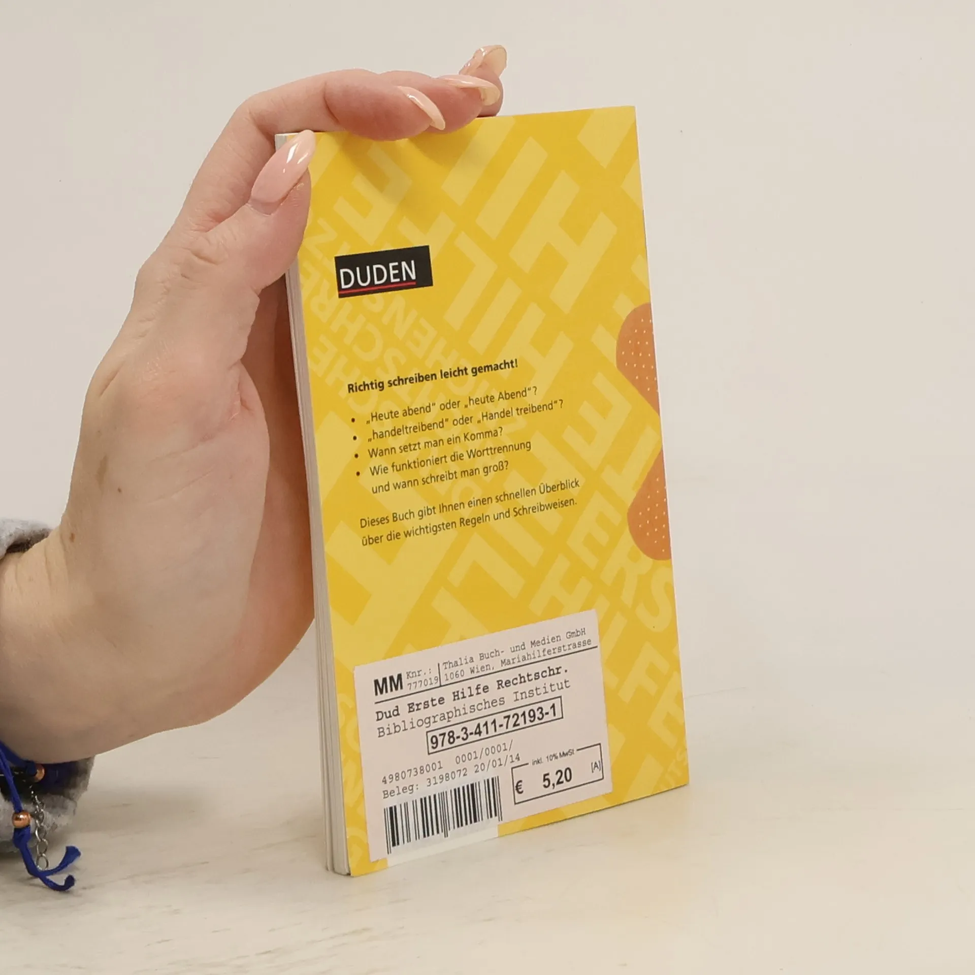 In zwei Stunden richtig schreiben? Dieser Ratgeber macht fit für eine fehlerfreie Kommunikation. Schnelle Lösungen für alltägliche Schreibschwierigkeiten und einprägsame Beispiele erleichtern das Verständnis der Tipps und Regeln. Die klar strukturierte Einteilung in acht Großkapitel, u. a. Worttrennung, Vokale und Vokalverbindungen sowie Zeichensetzung, unterstreicht die Übersichtlichkeit des kompakten Ratgebers.