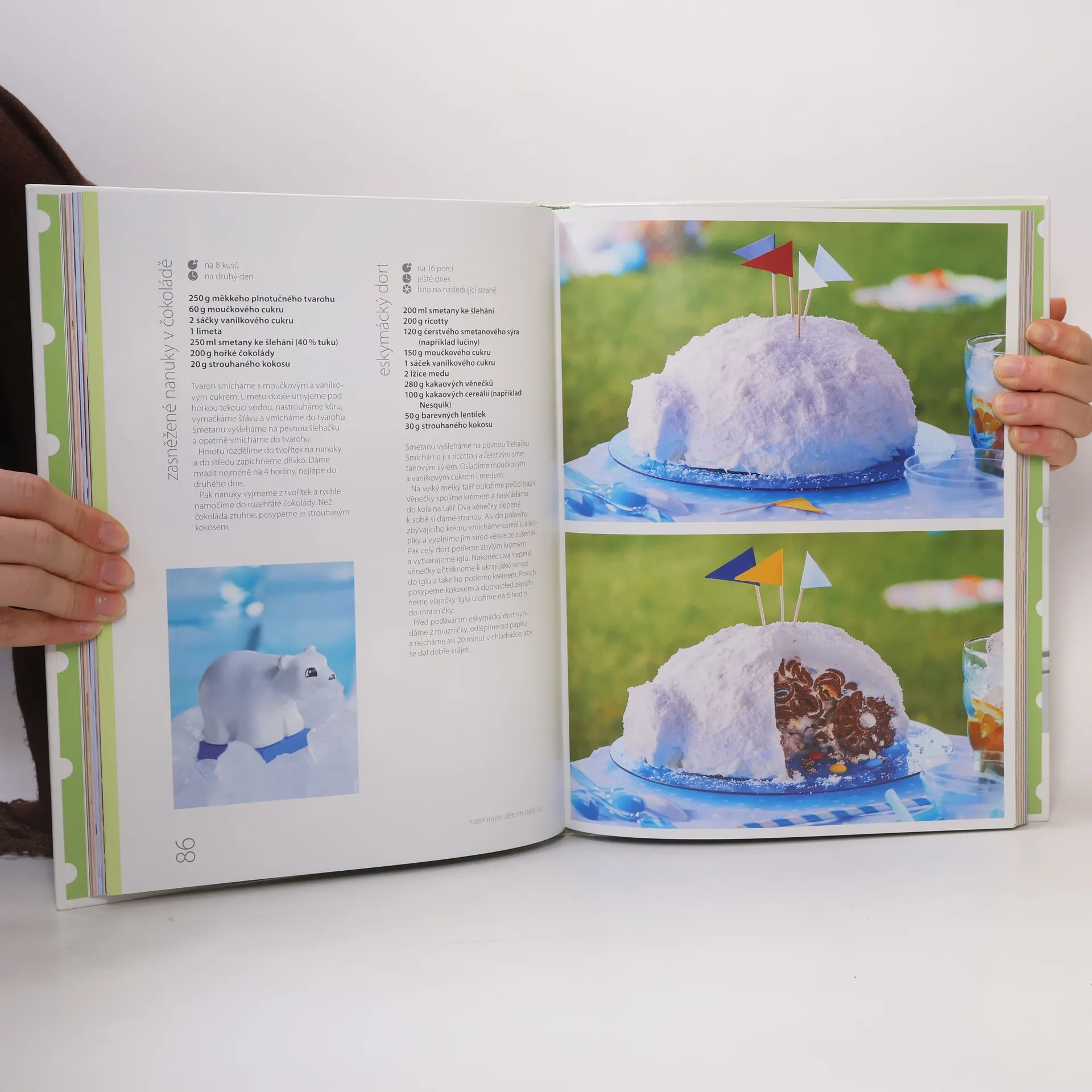 Dopřejte si se svými blízkými ve sváteční dny nápadité nepečené sladké snídaňové dobroty, jako je voňavé ovocné máslo či rýžové kuličky s ovocem, na výlet si místo obvyklé tatranky připravte nepečené laskominy, třeba dortíčky do skleničky nebo sezamové tyčinky, či lahodné nápoje, obdarujte nepečenými jedlými dárky kamarády, udělejte si rodinnou oslavu s velkolepým nepečeným ořechovým dortem s likérem nebo s čokoládovými lanýži pro oslavence, vyberte si z naší nabídky zábavná překvápka na dětskou party, na níž děti nebudou vědět, co dřív ochutnat a obdivovat - jahodové myši, žlutozelenou želvu, banánové skočdohubky či eskymácký dort. Zorganizujte například na lodi odpolední dýchánek s přáteli s nepečeným pohoštěním nebo zmrzlinový mejdan u vody či oslavu svátku zamilovaných s vášnivými dezerty. Nechte se před Vánoci inspirovat kapitolou „co nepeču s kamarádkami" a máte vystaráno s přípravou cukroví na Vánoce… Zkuste uspořádat večírek na téma opulentní a střídmější dezerty. Ochutnávejte s přáteli a pište body, třeba zjistíte, že dobroty s ovocem a zdravými cereáliemi mohou mít navrch nad hříšnými dezerty plnými čokolády, alkoholu a smetany. A slavnost, kde budete podávat výběr slavných dezertů i zajímavé zapomenuté kousky jako eton mess, trifle, kávová panna cotta či rajský dezert nebo posvícenské hnětýnky bude jistě nezapomenutelnou společenskou událostí.