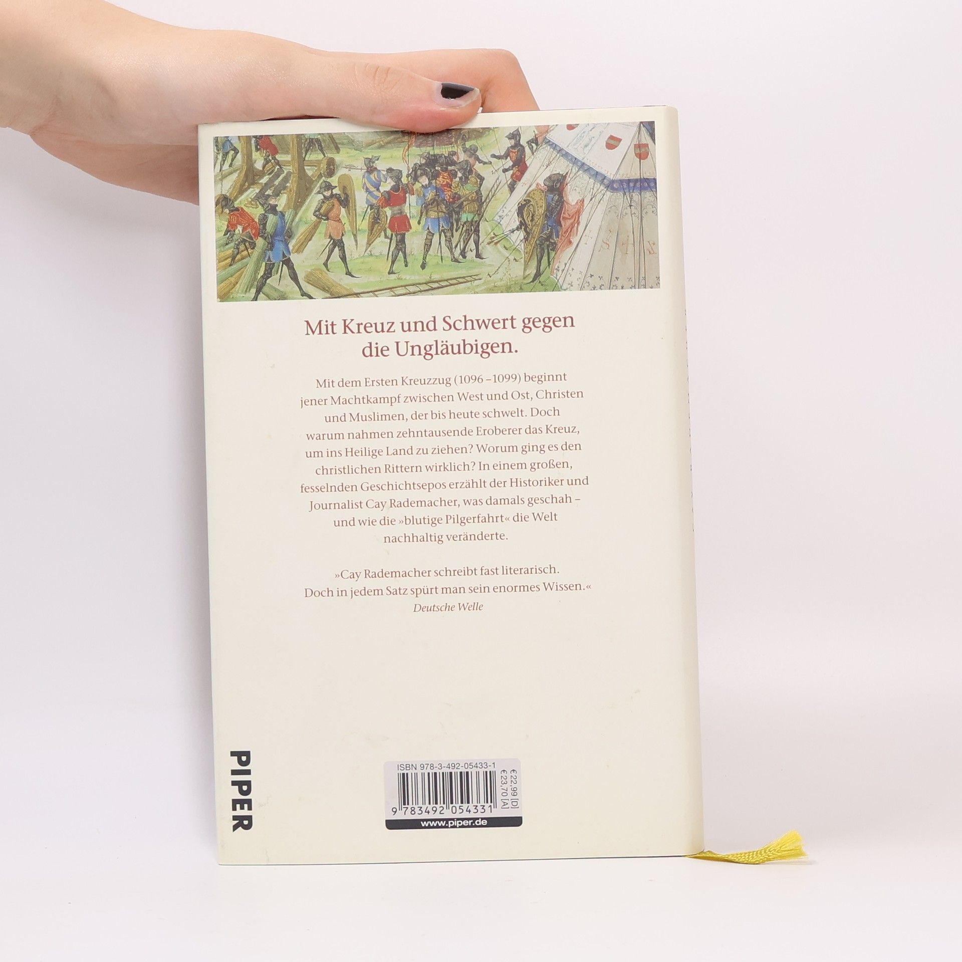 Als Papst Urban II. im Jahr 1095 zu einer 'bewaffneten Pilgerfahrt' gegen die Ungläubigen im Heiligen Land aufruft, stößt er bei den christlichen Rittern Europas auf offene Ohren: Zehntausende nehmen daraufhin das Kreuz und machen sich auf den Weg nach Jerusalem. Die Opfer, die die Kreuzfahrer unterwegs erbringen müssen, sind groß. Noch größer aber ist das Blutbad, dass sie unter den Bewohnern anrichten, als sie die Stadt mit dem Ruf 'Gott will es!' schließlich erstürmen. Doch wie lange werden die Ritter mit dem Kreuz die Heilige Stadt beherrschen können? Cay Rademachers Erzählung des Ersten Kreuzzuges zeigt eine grausam-faszinierende Episode des Mittelalters, die als der Beginn des Konflikts zwischen West und Ost bis in unsere Zeit hineinweist. So spannend erzählt liest sich Geschichte wie ein historischer Roman!
