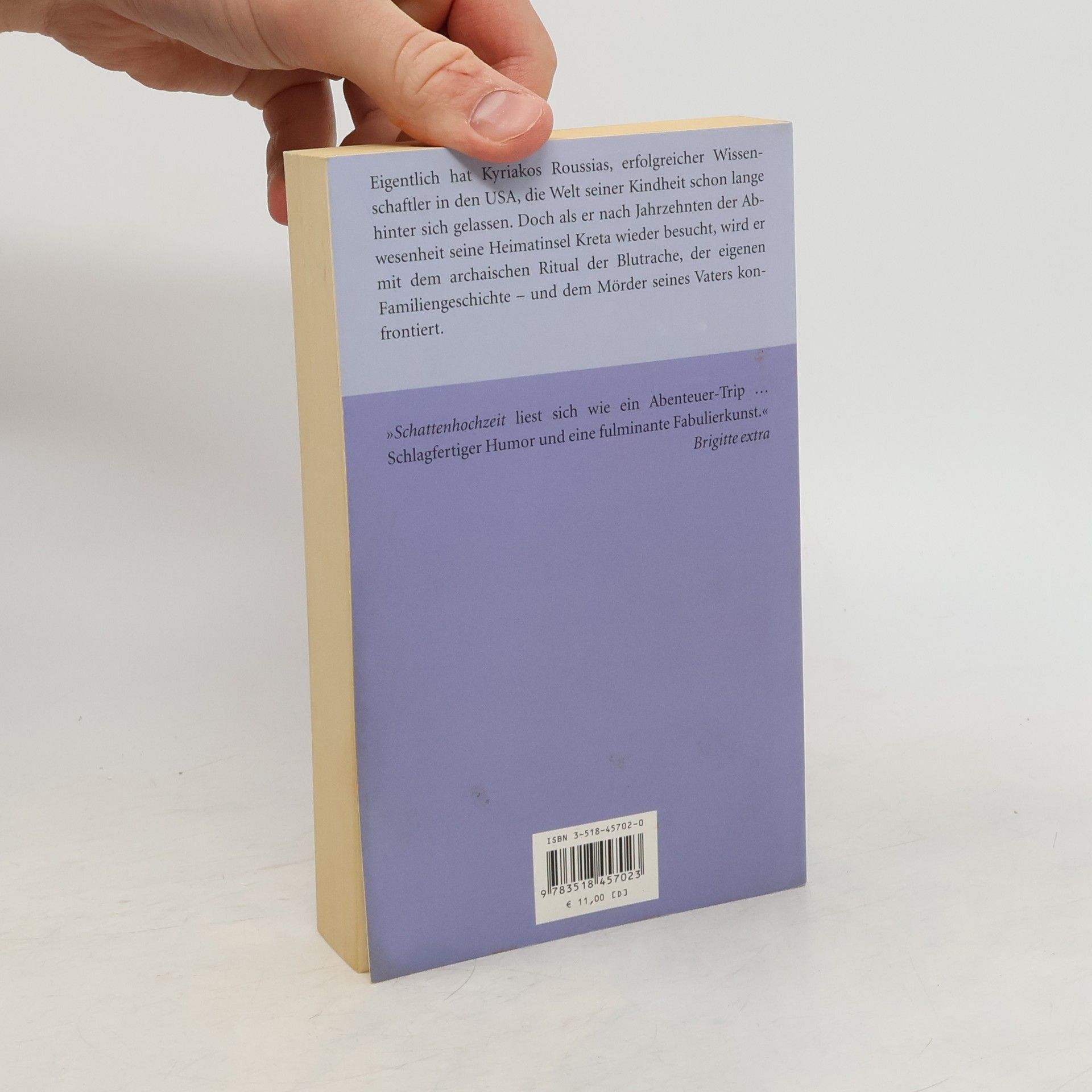 Kreta – das ist die Heimat Alexis Sorbas‘, die Insel der Männer in ihren schwarzen Hemden und den weißen Stiefeln, aber auch die Insel der Frauen, die ihre Familien zusammenhalten. An diesen Ort seiner Kindheit kehrt Kyriakos Roussias, angesehener Wissenschaftler in den USA, nach fast 30 Jahren zurück und sieht sich mit dem Gesetz der Blutrache konfrontiert: Die Reihe ist nun an ihm, den Tod seines Vaters zu rächen. Kann er sich diesem archaischen Ritual entziehen? Mit jedem Tag seines Aufenthalts wird ihm das ungeschriebene Gesetz der Vendetta vertrauter, und als es zur Begegnung mit dem Mörder seines Vaters kommt, muss er handeln. »Ioanna Karystiani ist ein fesselnder Roman gelungen, der alle Klischees mit Leichtigkeit vermeidet …« Tilman Spreckelsen, »Frankfurter Allgemeine Zeitung« »Schattenhochzeit ist ein Sozial-Epos und zugleich ein psychologischer Roman über die Suche nach Identität – mit einer leisen Liebesgeschichte.« »Der Spiegel«