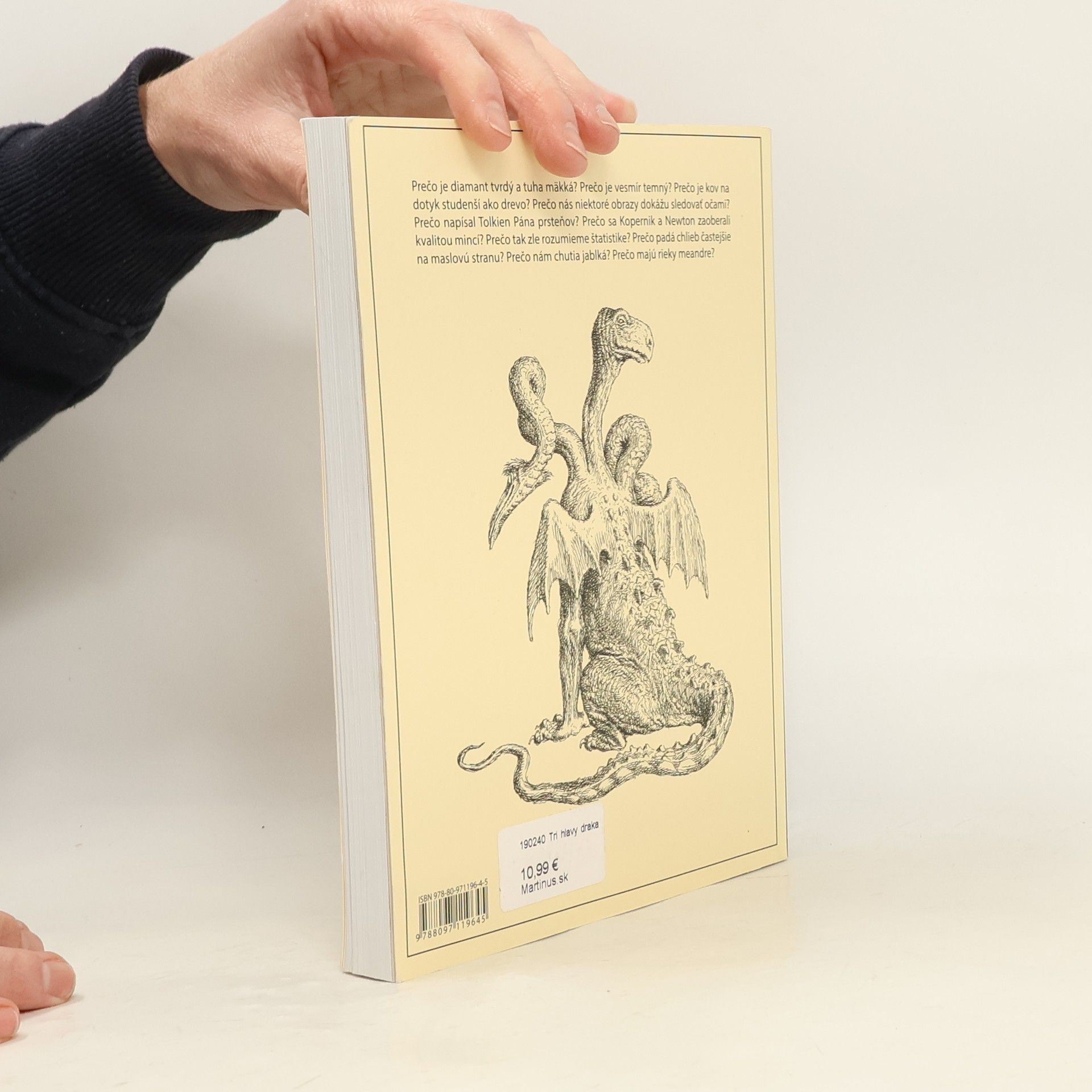 Po Jednom výdychu koňa a Dvoch hrboch ťavy vychádza tretia kniha textov Martina Mojžiša uverejnených pôvodne v rubrike .veda časopisu .týždeň. Desať päťčlánkových sérií, ktoré spolu obsahujú až 52 článkov. Ako je to možné? Tri hlavy Draka vám to prezradia. Prečo je diamant tvrdý a tuha mäkká? Prečo je vesmír temný? Prečo je kov na dotyk studenší ako drevo? Prečo nás niektoré obrazy dokážu sledovať očami? Prečo napísal Tolkien Pána prsteňov? Prečo sa Kopernik a Newton zaoberali kvalitou mincí? Prečo tak zle rozumieme štatistike? Prečo padá chlieb častejšie na maslovú stranu? Prečo nám chutia jablká? Prečo majú rieky meandre?