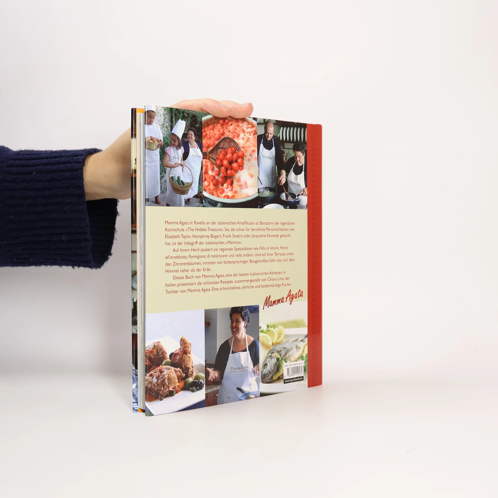 Mamma Agata kochte bereits für zahlreiche Hollywood-Schauspieler wie Humphrey Bogart, Anita Ekberg, Richard Burton, Liz Taylor, Fred Astaire, aber auch für Federico Fellini (der besonders ihre Pasta e fagioli schätzte), Jacqueline Kennedy (sie besuchte Ravello 1962) und Marcello Mas-troianni, daneben aber auch für bedeutende internationale Journalisten, Schriftsteller und Politiker. Mamma Agatas Kochkurse finden in ihrem Privathaus hoch über dem Meer statt. Das „Hidden Treasure“ ist ein gastliches Anwesen, das 365 Meter über der Küste von Amalfi thront, in Ravello, mit herrlichen Terrassen und einem großzügigen Garten voller Zitronen- und Obstbäume sowie Blumen- und Gemüsebeete. Mamma Agata hält sogar Geflügel! Fast alles, was sie zum Kochen in Schule und Familie braucht, baut sie selber an. Mamma Agata ist ein kulinarisches Naturtalent. Sie zeigt dem Leser, wie man nach kreativen Rezepten wunderbare Pastagerichte zubereiten kann. Aus Kalbfleisch, Fisch, Huhn und saisonalem Gemüse zaubert sie selbst kreierte Gerichte, aber auch Traditionelles wie Pizza, Kuchen, Marmelade und Eingemachtes. Alles hat in Mamma Agatas Küche seinen Platz.
