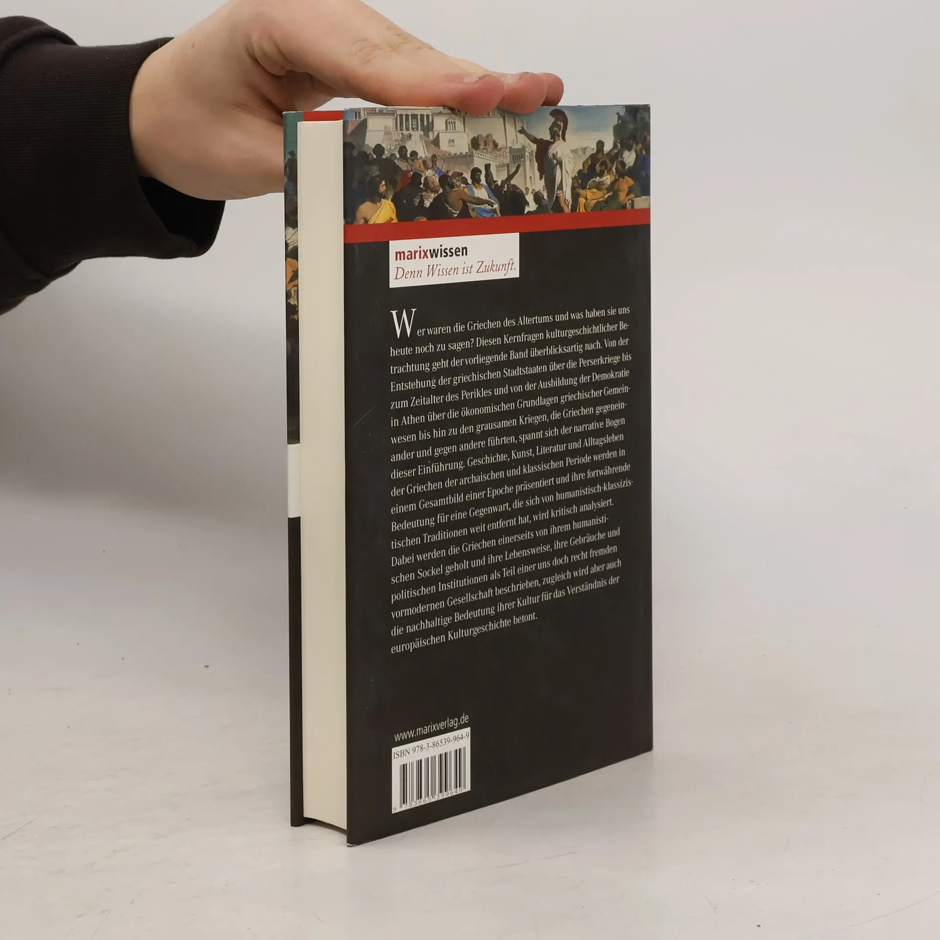 Wer waren die Griechen des Altertums und was haben sie uns heute noch zu sagen? Diesen Kernfragen kulturgeschichtlicher Betrachtung geht der vorliegende Band überblicksartig nach. Von der Entstehung der griechischen Stadtstaaten über die Perserkriege bis zum Zeitalter des Perikles und von der Ausbildung der Demokratie in Athen über die ökonomischen Grundlagen griechischer Gemeinwesen bis hin zu den grausamen Kriegen, die Griechen gegeneinander und gegen andere führten, spannt sich der narrative Bogen dieser Einführung. Geschichte, Kunst, Literatur und Alltagsleben der Griechen der archaischen und klassischen Periode werden in einem Gesamtbild einer Epoche präsentiert und ihre fortwährende Bedeutung für eine Gegenwart, die sich von humanistisch-klassizistischen Traditionen weit entfernt hat, wird kritisch analysiert. Dabei werden die Griechen einerseits von ihrem humanistischen Sockel geholt und ihre Lebensweise, ihre Gebräuche und politischen Institutionen als Teil einer uns doch recht fremden vormodernen Gesellschaft beschrieben, zugleich aber die nachhaltige Bedeutung ihrer Kultur für das Verständnis der europäischen Kulturgeschichte betont.