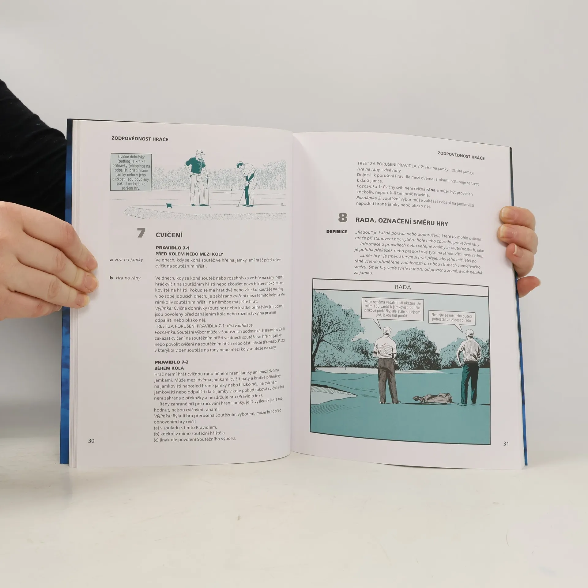 Golfová pravidla slovem i obrazem. Ilustrovaná pravidla golfu jsou jasnou a názornou učebnicí golfových pravidel včetně různých specifik. Ve své podstatě je kniha výčtem pravidel golfové hry a pro vybrané situace je připraven obrázek a komentář s podrobným vysvětlením problematiky golfového pravidla. Pro začátečníky nebo pokročilé hráče golfu? Kniha je určena v podstatě všem. Golfový začátečník díky názorné formě (ilustrace, vysvětlivky) pravidel golfové hry pochopí, co golf vlastně je, jak se hraje. Dozví se, co je golfová hra na jamky a rozdíl oproti hře na rány, nejde i podrobnosti o rozdílnosti golfových holí a další základní věci. Pokročilý hráč golfu naopak najde vysvětlení nebo upřesnění těch golfových pravidel, která v počátcích svého hraní golfu nepotřeboval nebo neznal. Vyplatí se koupit knihu Ilustrovaná pravidla golfu? Pravidla golfu by měl znát každý hráč této hry (pokud chce zelenou kartu tak je musí opravdu znát a tuto znalost pravidel také prokázat) a kniha Ilustrovaná pravidla golfu je asi "nejstravitelnější" příručkou. Kniha Vám umožní poměrně rychlé studovat a hlavně snadno pochopit podstatu golfu i zejména jednotlivých pravidel. Otřepaná věta "jeden obrázek znamená víc než tisíc slov" v případě Ilustrovaných pravidel golfu dokazuje svou pravdivost .