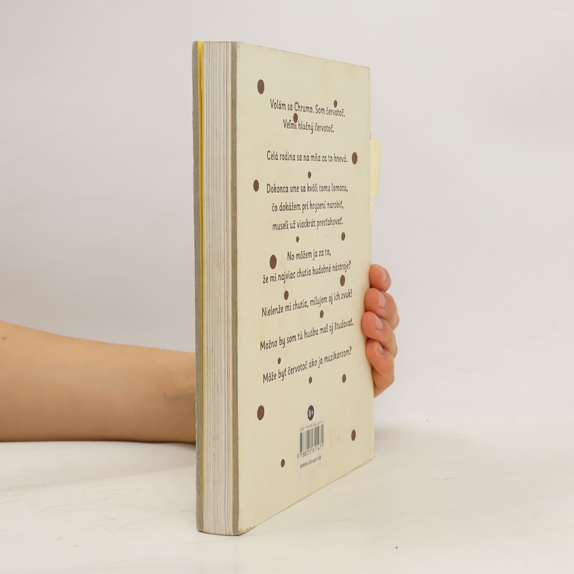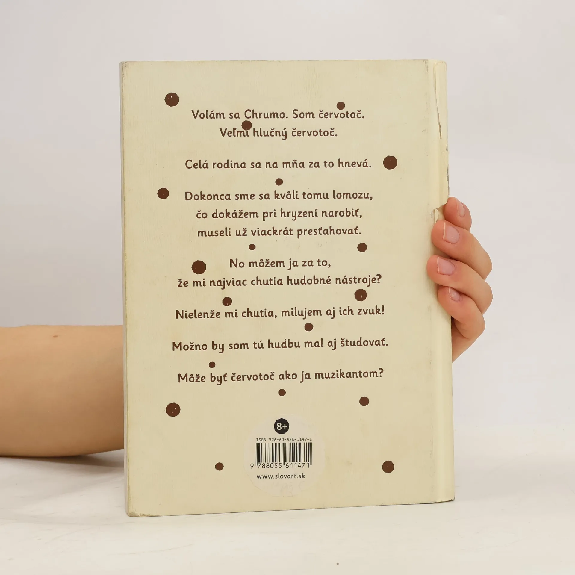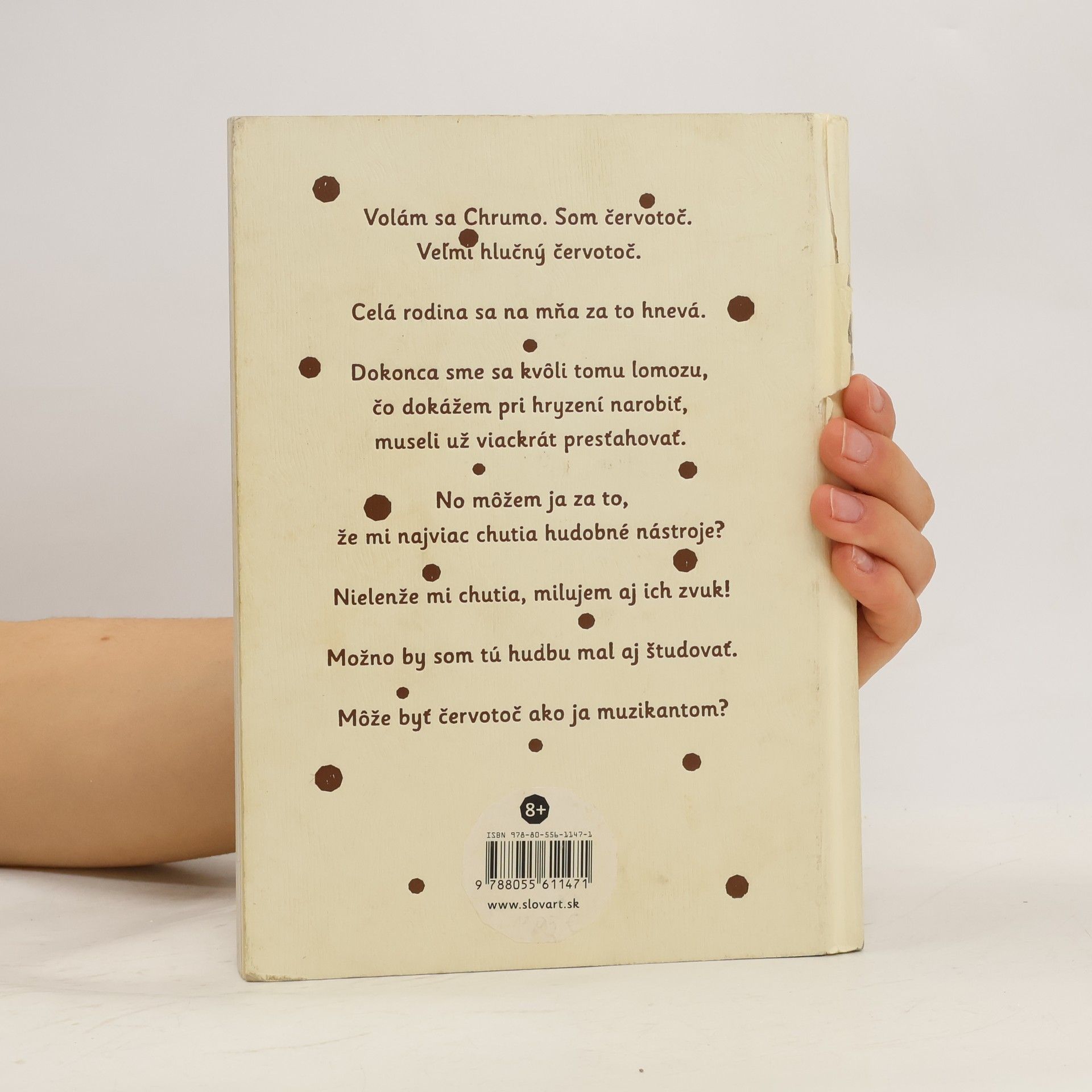 Chrumo je červotoč. Veľmi hlasný červotoč. Chrúme tak nahlas, že jeho rodinu vyhnali už z niekoľkých domovov. Až si raz za svoje obydlie vybrali vzácny hudobný nástroj. Darmo sa barón Vlhčil snažil vylúdiť čistý tón, červotoče v nástroji robili neplechu. Jediný spôsob, ako sa ich zbaviť, bolo vzácne violončelo zmraziť. A tak sa červotočia rodina na 172 rokov ocitla v treskúcom mraze. Lenže červotoče prežijú všetko. Keď po roztopení ľadovca nástroj objavili, najväčším prekvapením boli práve živé červotoče. Rodinka si užívala najprv karanténu, potom slávu, ale Chrumo zmizol. Precestoval svet, najprv sa zahryzol do darovanej fujary, potom do basgitary rockového muzikanta či do klarinetu. A z čoho ochutnal, toho zvuk vedel dokonale napodobniť. Hudba sa mu tak zapáčila, až sa rozhodol ju vyštudovať. Môže byť však červotoč naozaj muzikantom?