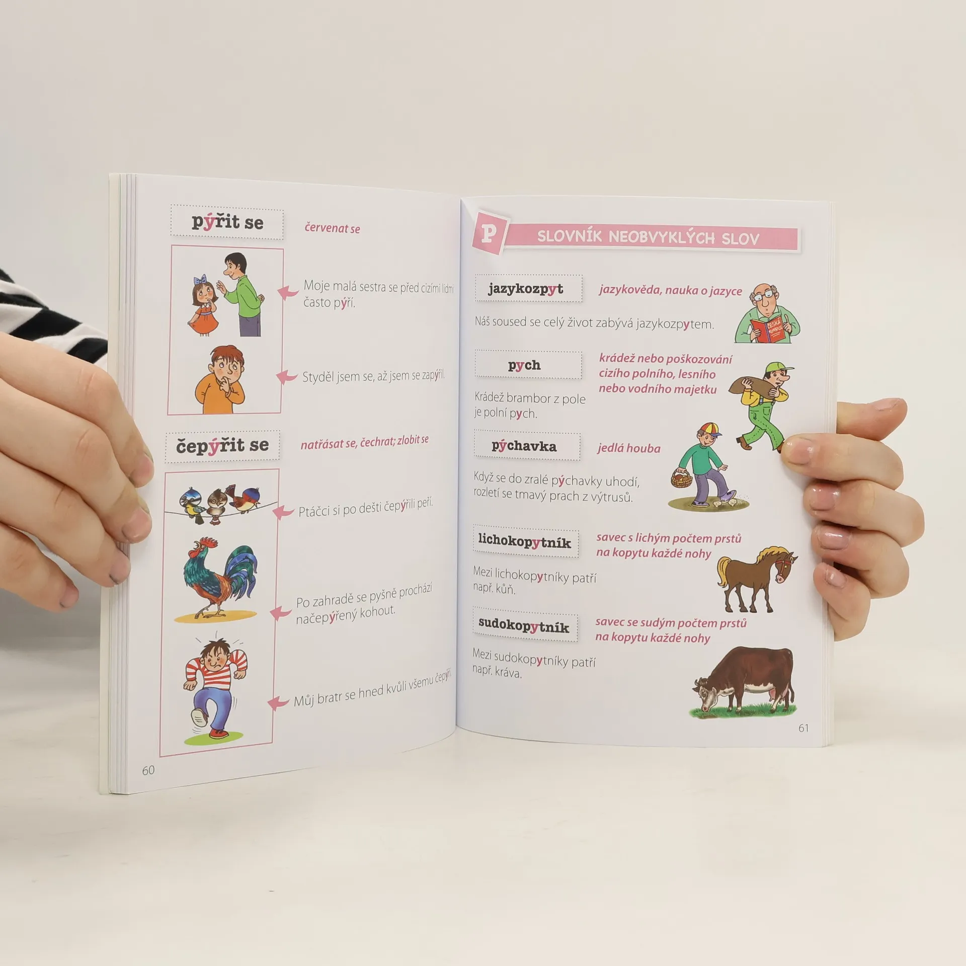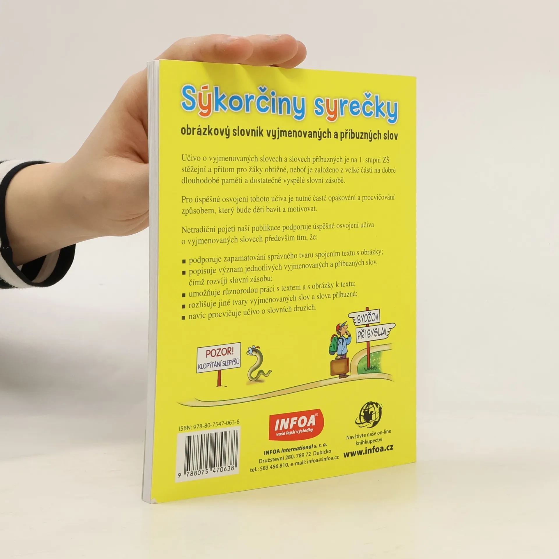 Učivo o vyjmenovaných slovech a slovech příbuzných je na 1. stupni ZŠ stěžejní a přitom pro žáky obtížné, neboť je založeno z velké části na dobré dlouhodobé paměti a dostatečně vyspělé slovní zásobě. Pro úspěšné osvojení tohoto učiva je nutné časté opakování a procvičování způsobem, který bude děti bavit a motivovat. Netradiční pojetí naší publikace podporuje úspěšné osvojení učiva o vyjmenovaných slovech především tím, že: - podporuje zapamatování správného tvaru spojením textu s obrázky - popisuje význam jednotlivých vyjmenovaných a příbuzných slov, čímž rozvíjí slovní zásobu - umožňuje různorodou práci s textem a s obrázky k textu - rozlišuje jiné tvary vyjmenovaných slov a slova příbuzná - navíc procvičuje učivo o slovních druzích