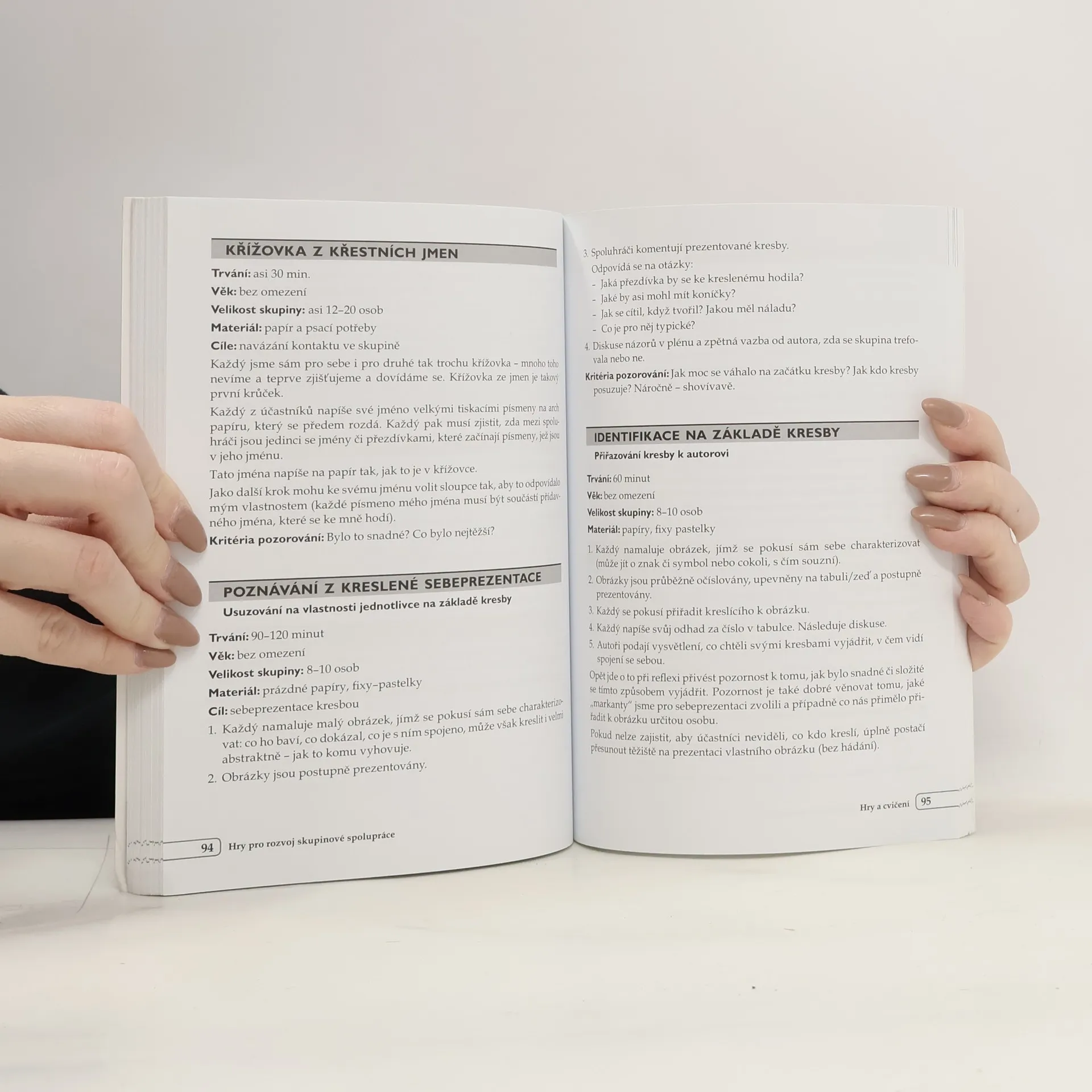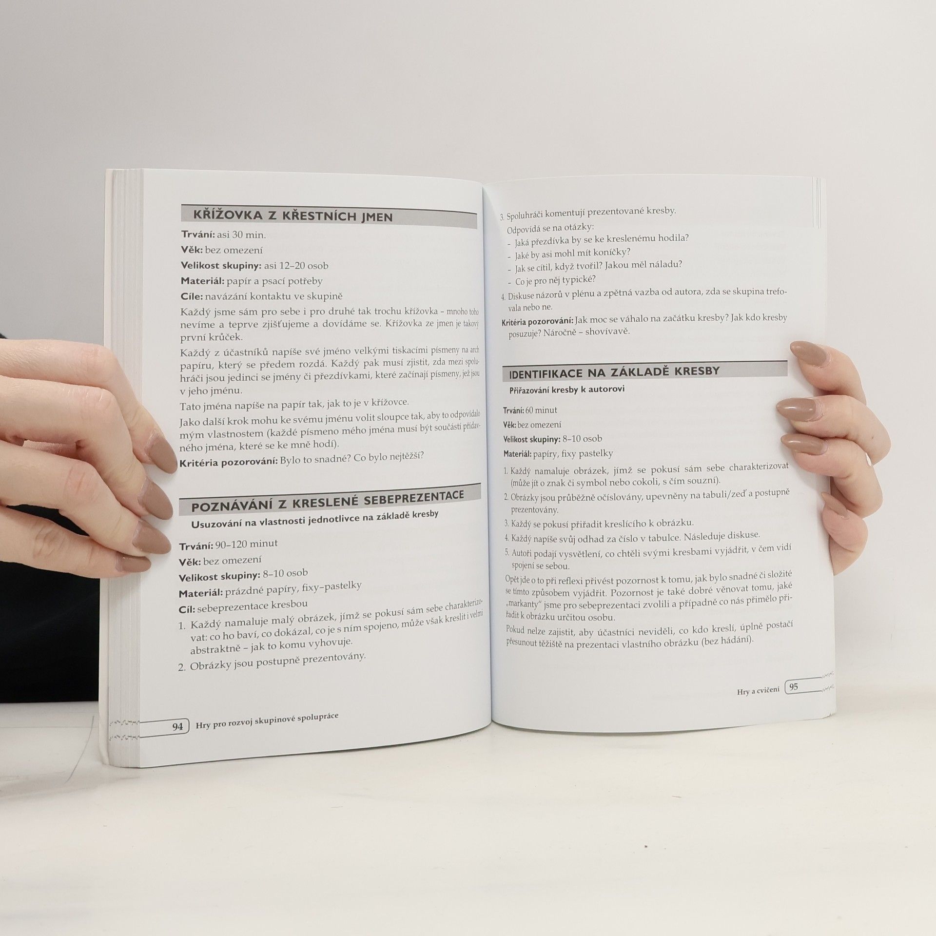 Publikace soustřeďuje náměty na aktivity, které jsou vhodné pro podpoření schopnosti spolupráce u dětí a dospívajících. Školní a mimoškolní pedagogové, případně rodiče, v ní najdou inspiraci k cílenému trávení volného času v menší či větší skupině. Při hrách jednotlivci prohlubují sebepoznání i vzájemné poznávání s ostatními, reflektují svoje postoje vůči sobě, vůči druhým, vůči skupině. Modelové situace poskytují hráčům možnost uvědomit si jevy probíhající ve skupině a cíleně s nimi pracovat. Knížka přináší různé typy her – verbální, pohyblivé, kreativní aj. Souboru her předchází stručný metodický úvod. Publikace je určena školním a mimoškolním pedagogům.