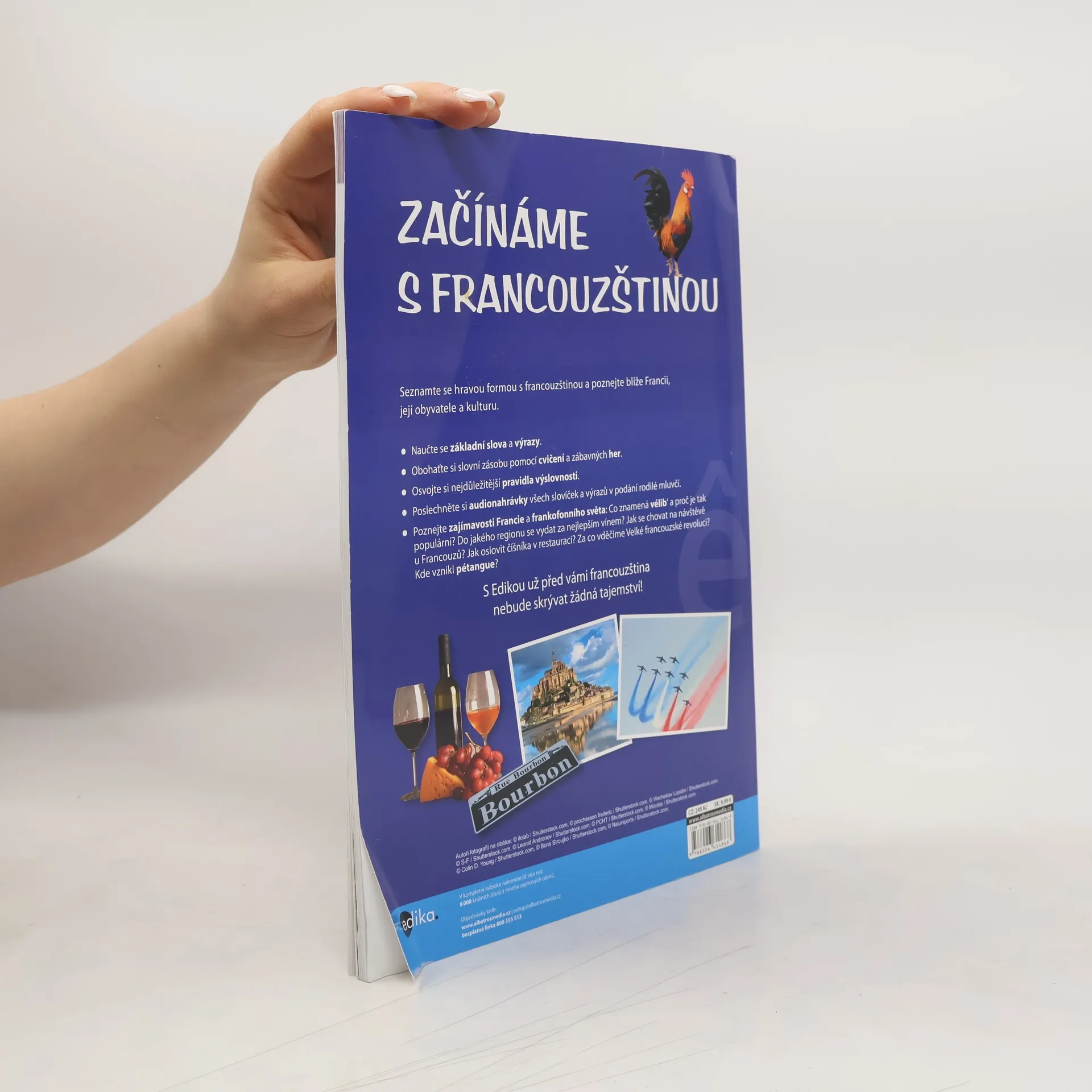 Seznamte se hravou formou s francouzštinou a poznejte blíže Francii, její obyvatele a kulturu. * Naučte se základní slova a výrazy. * Obohaťte si slovní zásobu pomocí cvičení a zábavných her. * Osvojte si nejdůležitější pravidla výslovnosti. * Poslechněte si audionahrávky všech slovíček a výrazů v podání rodilé mluvčí. * Poznejte zajímavosti Francie a frankofonního světa: Co znamená vélib‘ a proč je tak populární? Do jakého regionu se vydat za nejlepším vínem? Jak se chovat na návštěvě u Francouzů? Jak oslovit číšníka v restauraci? Za co vděčíme Velké francouzské revoluci? Kde vznikl pétangue? Odpovědi na tyto a další otázky o francouzském jazyce a kultuře najdete v knize. Velice pěkná a bohatě ilustrovaná příručka pro všechny, kteří se buď teprve chtějí seznámit s francouzštinou anebo již ovládají základy tohoto krásného jazyka. Audionahrávku namluvenou rodilou mluvčí naleznete v sekci Soubory ke stažení.