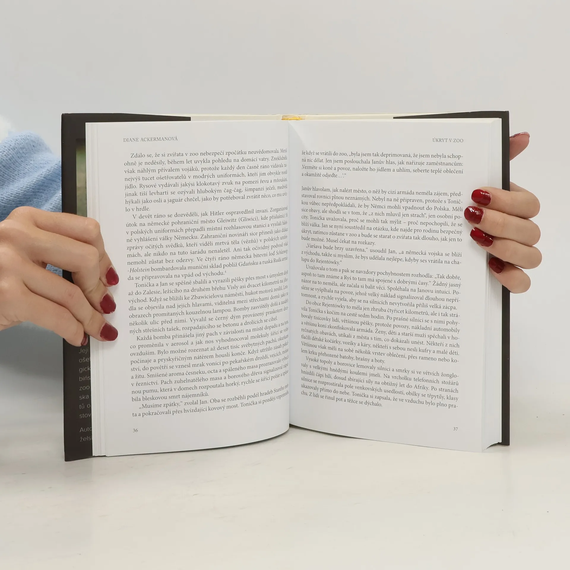 Skutečný příběh ředitele varšavské zoologické zahrady Jana Żabińského a jeho ženy Antoniny, kteří po vybombardování zoo během invaze Němců do Polska v roce 1939 využili zájem nacistů o zvířata a zachránili tak přes tři stovky Židů. Autorka zdůrazňuje hrdinství manželského páru, protože v té době byl obyvatel Varšavy odsouzen k smrti i za to, že podal žíznivému Židovi sklenici vody. Příběh je důsledně propracovaný, systematicky zdokumentovaný. Autorka vyzpovídala i dosud žijícího syna manželů Żabińských Ryszarda, lidi z varšavské zoo a ženy, jež byly současnicemi Żabińských a účastnily se akcí polského podzemního hnutí odporu. Zkušenost nadané romanopiskyně a básnířky mění historický popis událostí v umělecké dílo. Kniha získala v roce 2008 cenu Orion Award, a příběh byl dokonce zfilmován, u nás se v kinech objevil v březnu roku 2017 pod názvem Úkryt v zoo. Antoninu Żabińskou v něm hraje populární americká herečka Jessica Chastainová.