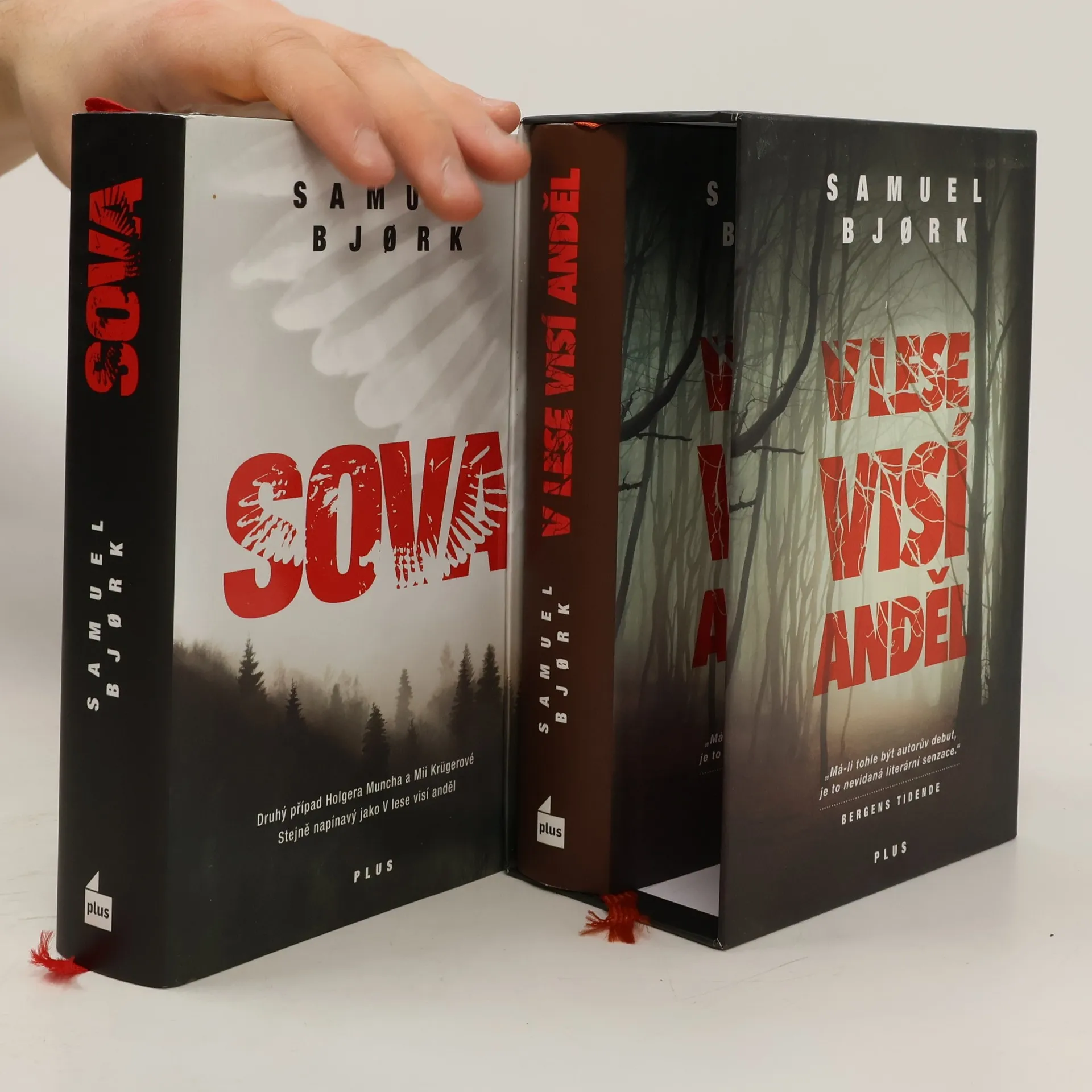 Sova. V lese visí anděl. „Od dob Larssonova Millenia tu nejspíš nebyla tak zvláštní, nesourodá, a přitom skvěle fungující dvojice vyšetřovatelů jako u nadšeně přijímaného románu Samuela Bjorka...“ napsal po českém vydání románu V lese visí anděl recenzent v Instinktu. A čtenářská obliba detektivek s Holgerem Munchem a Miou Krügerovou jeho slova potvrzuje. Užijte si oba jejich případy v jednom!