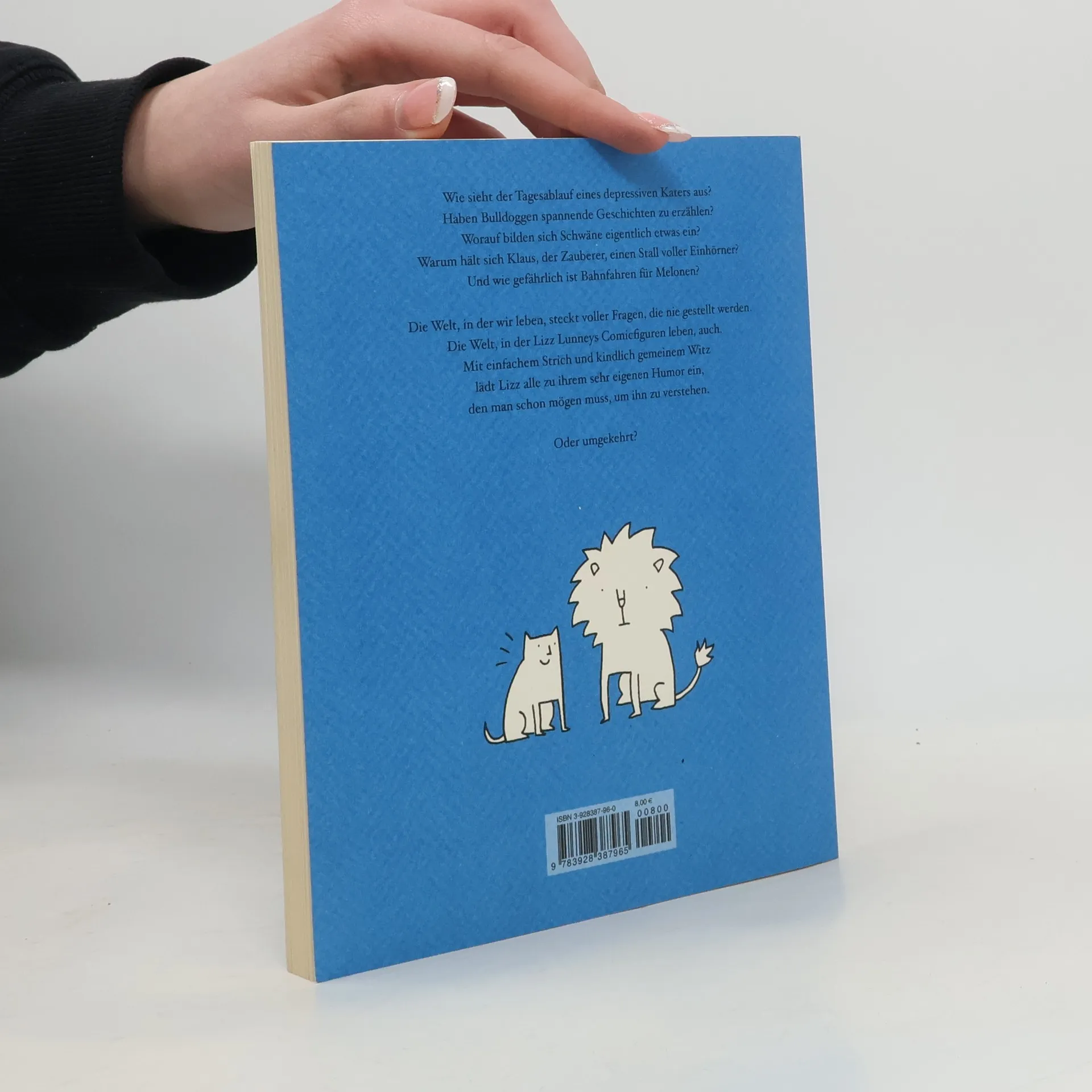 Wie sieht der Tagesablauf eines depressiven Katers aus? Haben Bulldoggen spannende Geschichten zu erzählen? Worauf bilden sich Schwäne eigentlich etwas ein? Warum hält sich Klaus der Zauberer einen Stall voller Einhörner? Und wie gefährlich ist Bahnfahren für Melonen? Die Welt, in der wir leben, steckt voller Fragen, die nie gestellt werden. Die Welt, in der Lizz Lunneys Comicfiguren leben, auch. Mit einfachem Strich und kindlich gemeinem Witz lädt Lizz alle zu ihrem sehr eigenen Humor ein, den man schon mögen muss, um ihn zu verstehen. Oder umgekehrt?