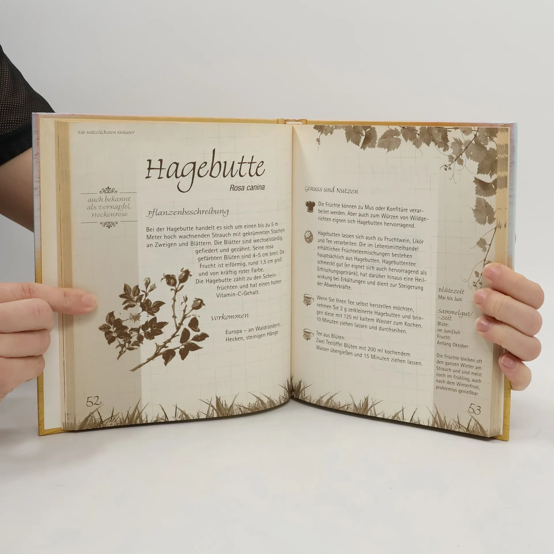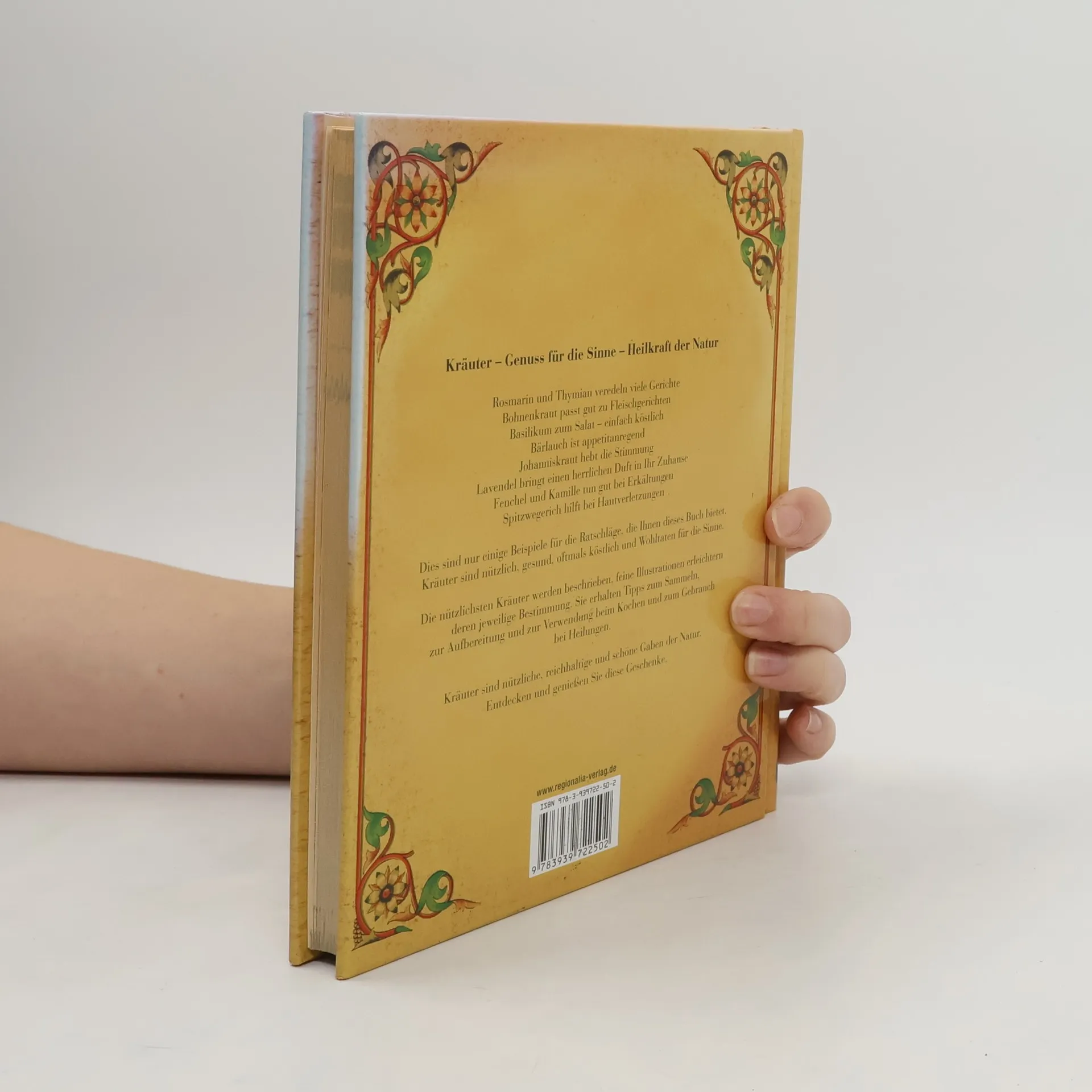Rosmarin und Thymian veredeln viele Gerichte. Bohnenkraut pt gut zu Fleischgerichten. Basilikum zum Salat – einfach köstlich. Bärlauch ist appetitanregend. Johanniskraut hebt die Stimmung. Lavendel bringt einen herrlichen Duft in Ihr Zuhause. Fenchel und Kamille tun gut bei Erkältungen. Spitzwegerich hilft bei Hautverletzungen. Dies sind nur einige Beispiele für die Ratschläge, die Ihnen dieses Buch bietet. Kräuter sind nützlich, gesund, oftmals köstlich und Wohltaten für die Sinne. Die nützlichsten Kräuter werden beschrieben, feine Illustrationen erleichtern deren eilige Bestimmung. Sie erhalten Tipps zum Sammeln, zur Aufbereitung und zur Verwendung beim Kochen und zum Gebrauch bei Heilungen. Kräuter sind nützliche, reichhaltige und schöne Gaben der Natur. Entdecken und genießen Sie diese Geschenke.