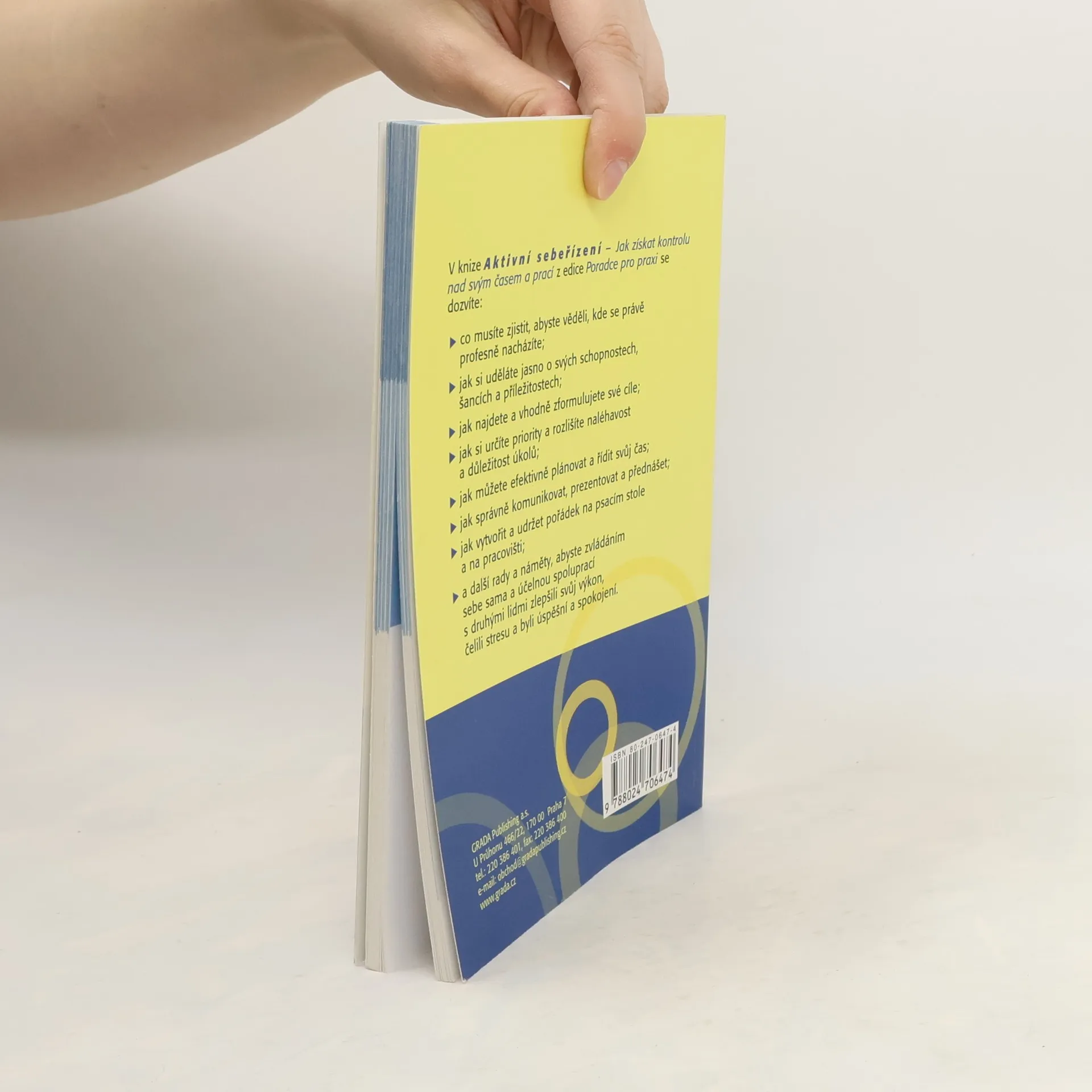 V knize Aktivní sebeřízení – Jak získat kontrolu nad svým časem a prací z edice Poradce pro praxi se dozvíte: – co musíte zjistit, abyste věděli, kde se právě profesně nacházíte; – jak si uděláte jasno o svých schopnostech, šancích a příležitostech; – jak najdete a vhodně zformulujete své cíle; – jak si určíte priority a rozlišíte naléhavost a důležitost úkolů; – jak můžete efektivně plánovat a řídit svůj čas; – jak správně komunikovat, prezentovat a přednášet; – jak vytvořit a udržet pořádek na psacím stole a na pracovišti; – a další rady a náměty, abyste zvládáním sebe sama a účelnou spoluprací s druhými lidmi zlepšili svůj výkon, čelili stresu a byli úspěšní a spokojení.