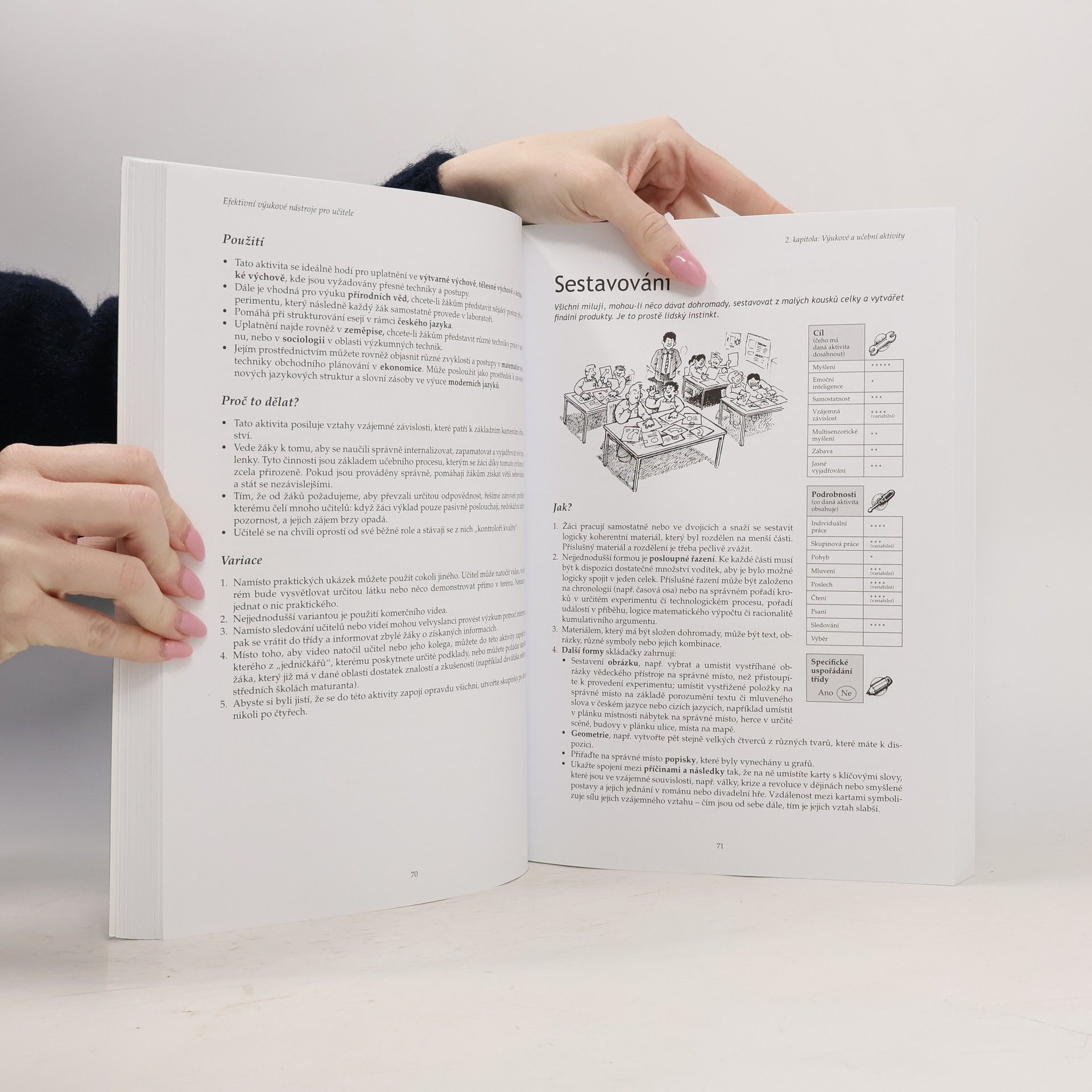 Tato publikace se zaměřuje na to, jak se učíme a vyučujeme, a klade důraz na zvýšení úspěšnosti žáků. Nabízí učitelům možnosti rozvoje jejich výukových stylů a podněcuje profesionální učení, čímž mění učení na vzrušující a zábavnou činnost pro všechny. Obsahuje praktické nápady, které jsou klíčové pro zlepšení kvality výuky a učení, přičemž kombinuje teorii s praxí. Učitelé se dozvědí, proč některé metody fungují, a jak efektivně strukturovat vyučovací hodiny. Kniha nabízí výukové strategie, které vyhovují různým stylům učení, podporují kreativitu učitelů a zaujímají jak nadané, tak vyrušující žáky. Bez ohledu na předmět, který vyučujete, příručka pomáhá rozvíjet schopnosti myšlení, ukotvovat studijní dovednosti, vyučovat občanství a podporovat nezávislost studentů. Zdroje zahrnují neurovědu, psychologii a sociologii a poskytují přehled o současném myšlení o učení. Obsahuje padesát různých vyučovacích technik, praktické nápady pro skupinovou práci, zvládání chování a podporu osobní odpovědnosti. Dále nabízí šest základních způsobů fungování ve třídě a nástroje pro kontrolu výukových postupů od plánování po řízení výkonu.