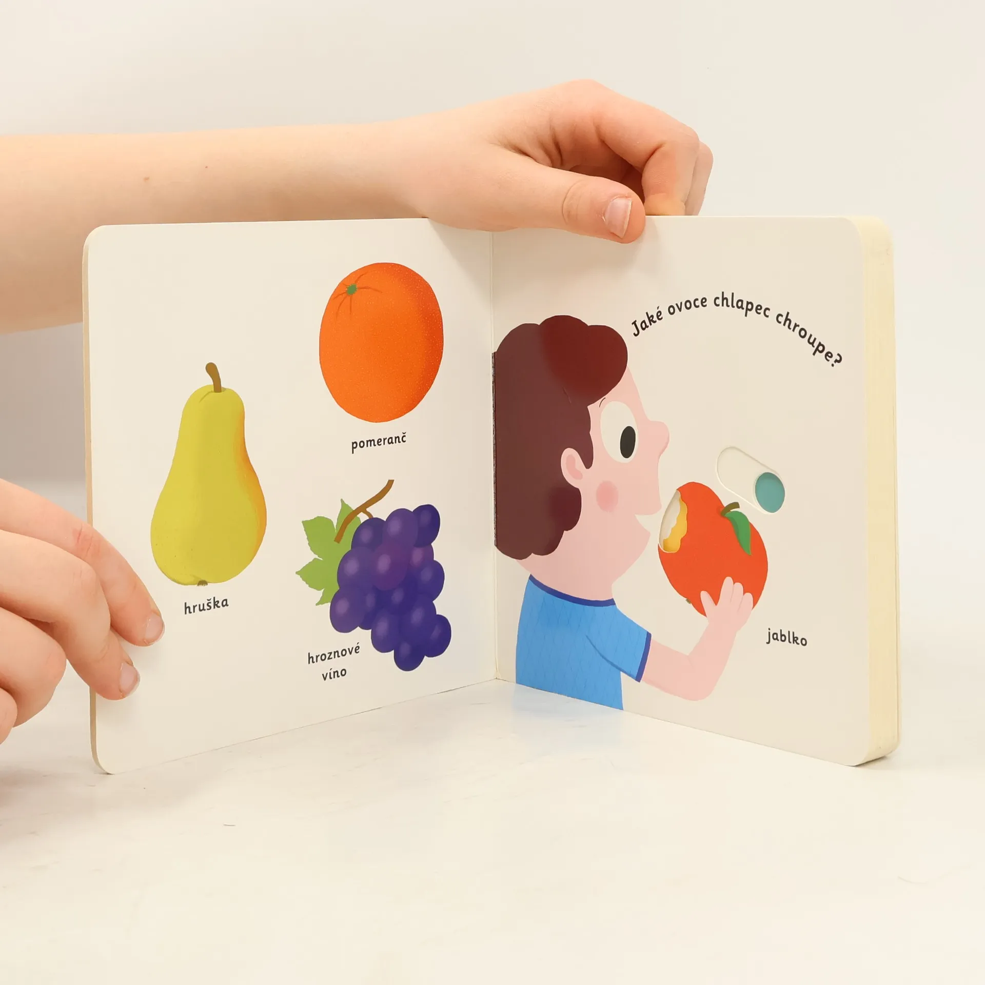 Nauč se poznávat jednotlivé druhy ovoce. Pestrobarevné ilustrace a posuvné prvky v tomto leporelu zábavnou formou seznamuje děti s ovocem a barvami. Pohyblivé elementy v této knize rozvíjejí jemnou motoriku dítěte a přispívají k živosti ilustrací. Knížka s prvky Montessori.