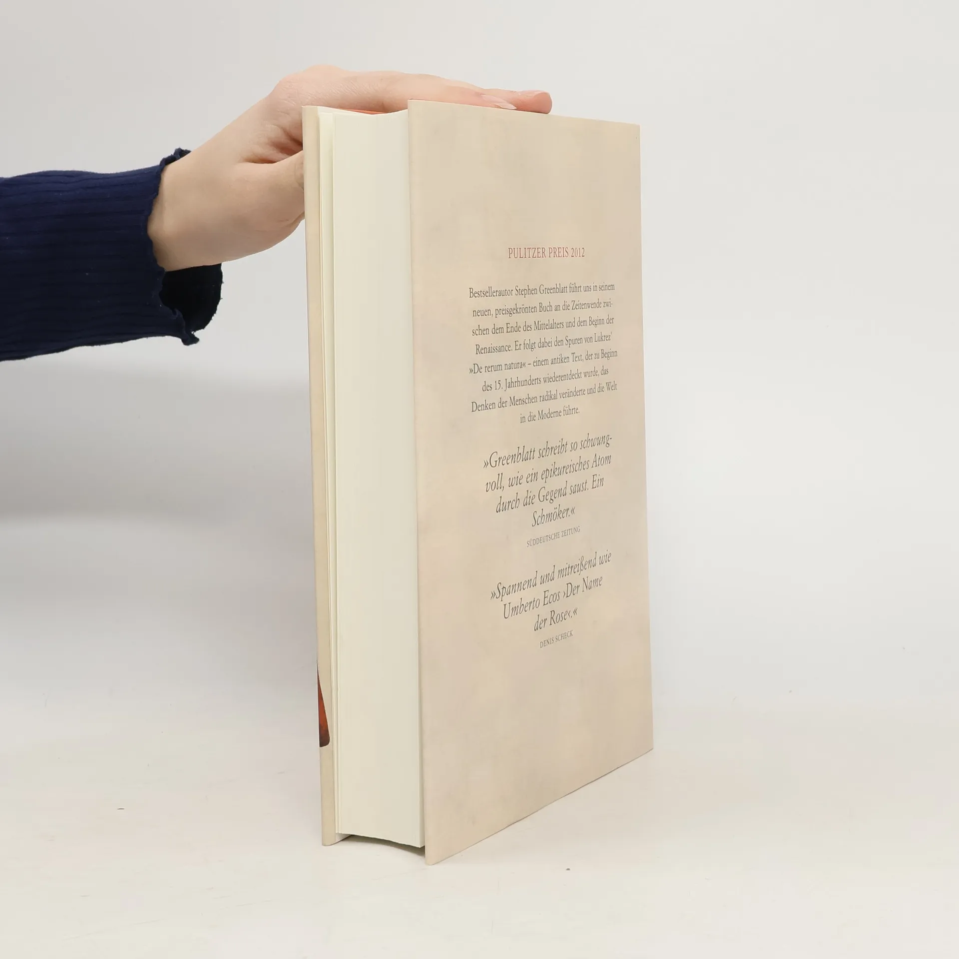 Ausgezeichnet mit dem Pulitzerpreis und dem National Book Award Bestsellerautor Stephen Greenblatt führt uns in seinem neuen Buch an die Zeitenwende zwischen dem Ende des Mittelalters und dem Beginn der Renaissance. Er folgt dabei den Spuren von Lukrez' „De rerum natura” – einem antiken Text, der zu Beginn des 15. Jahrhunderts wiederentdeckt wurde, das Denken der Menschen radikal veränderte und die Welt in die Moderne führte. An einem kalten Januartag des Jahres 1417 fällt dem Humanisten Poggio Bracciolini in einem deutschen Kloster ein altes Manuskript in die Hände. Damit rettet er das letzte vorhandene Exemplar von Lukrez’ antikem Meisterwerk „De rerum natura” vor dem Vergessen, nicht ahnend, dass dieses Buch die damalige Welt in ihren Grundfesten erschüttern wird. Denn der antike Text mit seinen unerhörten Gedanken über die Natur der Dinge eröffnet den Menschen des ausgehenden Mittelalters neue Horizonte, befeuert die beginnende Renaissance und bildet die Basis unserer modernen Weltsicht. Farbenfroh und spannend beschreibt Stephen Greenblatt, wie die Verbreitung des Buches die Renaissance beeinflusste und bedeutende Künstler wie Botticelli und Shakespeare, aber auch Denker wie Giordano Bruno und Galileo Galilei prägte. Greenblatt bietet einen neuen Blick auf die Geburtsstunde der Renaissance, der zugleich zeigt, wie ein einzelnes Buch dem Lauf der Geschichte eine neue Richtung geben kann.