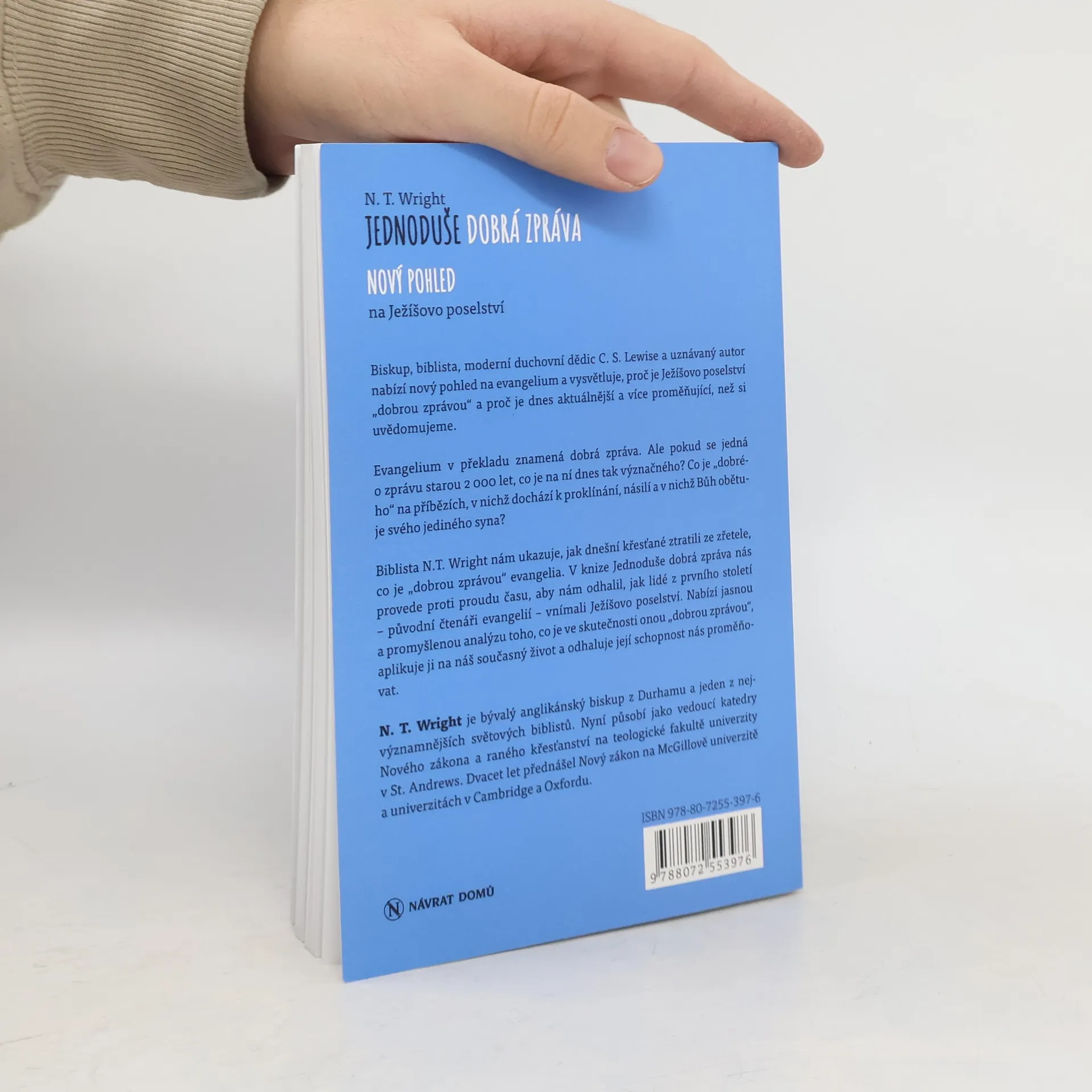 Biskup, biblista, moderní duchovní dědic C. S. Lewise a uznávaný autor nabízí nový pohled na evangelium a vysvětluje, proč je Ježíšovo poselství "dobrou zprávou" a proč je dnes aktuálnější a více proměňující, než si uvědomujeme. Evangelium v překladu znamená dobrá zpráva. Ale pokud se jedná o zprávu starou 2000 let, co na ní dnes tak význačného? Co je „dobrého“ na příbězích, v nichž dochází k proklínání, násilí a v nichž Bůh obětuje svého jediného syna? Biblista N. T. Wright nám ukazuje, jak dnešní křesťané ztratili ze zřetele, co je „dobrou zprávou“ evangelia. V knize Jednoduše dobrá zpráva nás provede proti proudu času, aby nám odhalil, jak lidé z prvního století – původní čtenáři evangelií – vnímali Ježíšovo poselství. Nabízí jasnou a promyšlenou analýzu toho, co je ve skutečnosti onou „dobrou zprávou“, aplikuje ji na náš současný život a odhaluje její schopnost nás proměňovat.