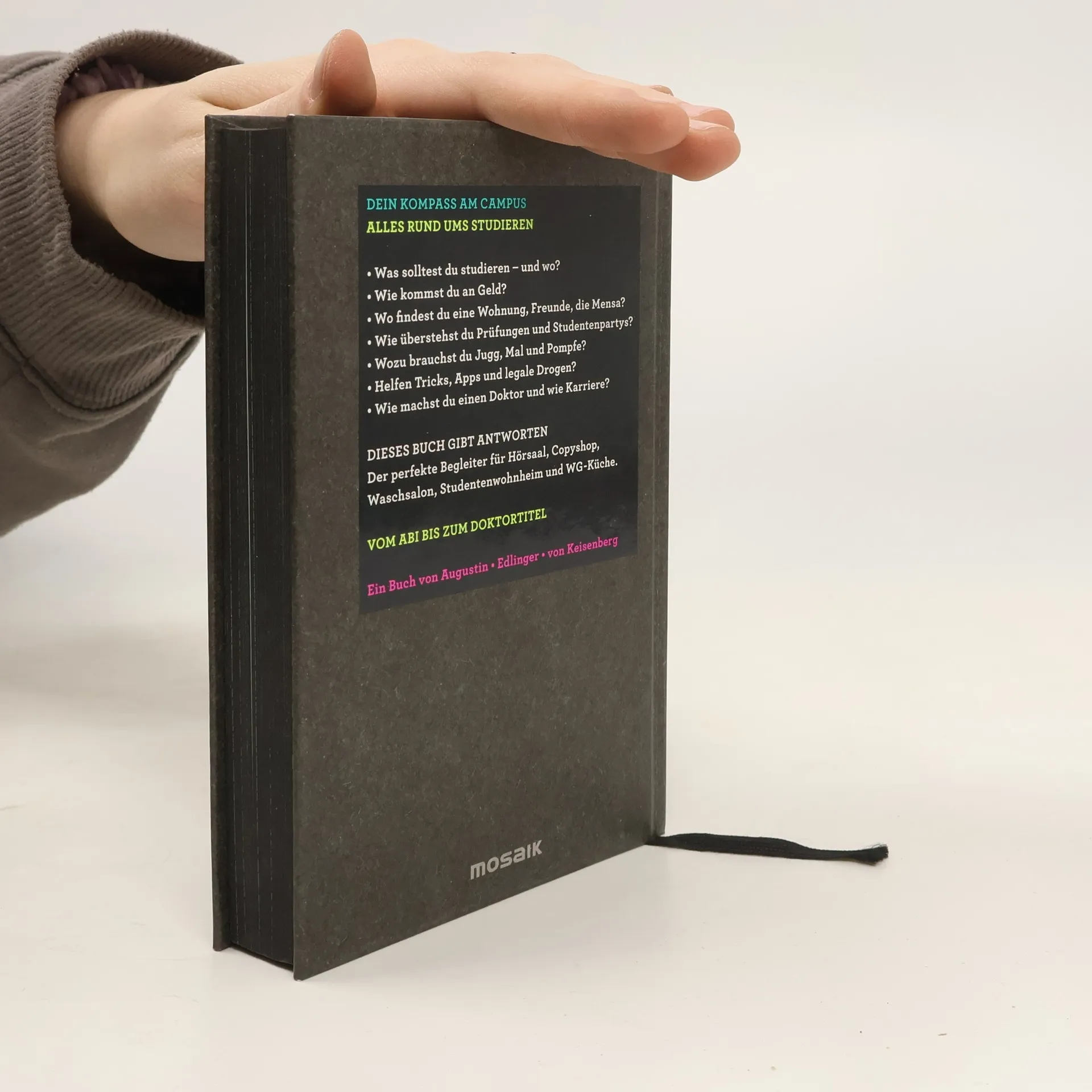 Das Standardwerk von morgen Wer Student/in wird, steht vor zahlreichen Fragen: Dieses Buch gibt kompetente Antworten und witzige Tipps – super praktisch, unverzichtbar für vor, während und nach dem Studium: Welcher Studiengang passt zu mir? Wo sollte ich studieren? Wo finde ich eine coole WG, nützliche Apps? Wo sitze ich im Hörsaal am besten? Wie komme ich an gute Studentenjobs, an den Crashkurs Rhetorik? Was erleichtert das Studieren mit Kind? Welcher Abschluss passt? Doktortitel oder Scheine anderweitig erwerben? Wie beantrage ich Hartz IV?.