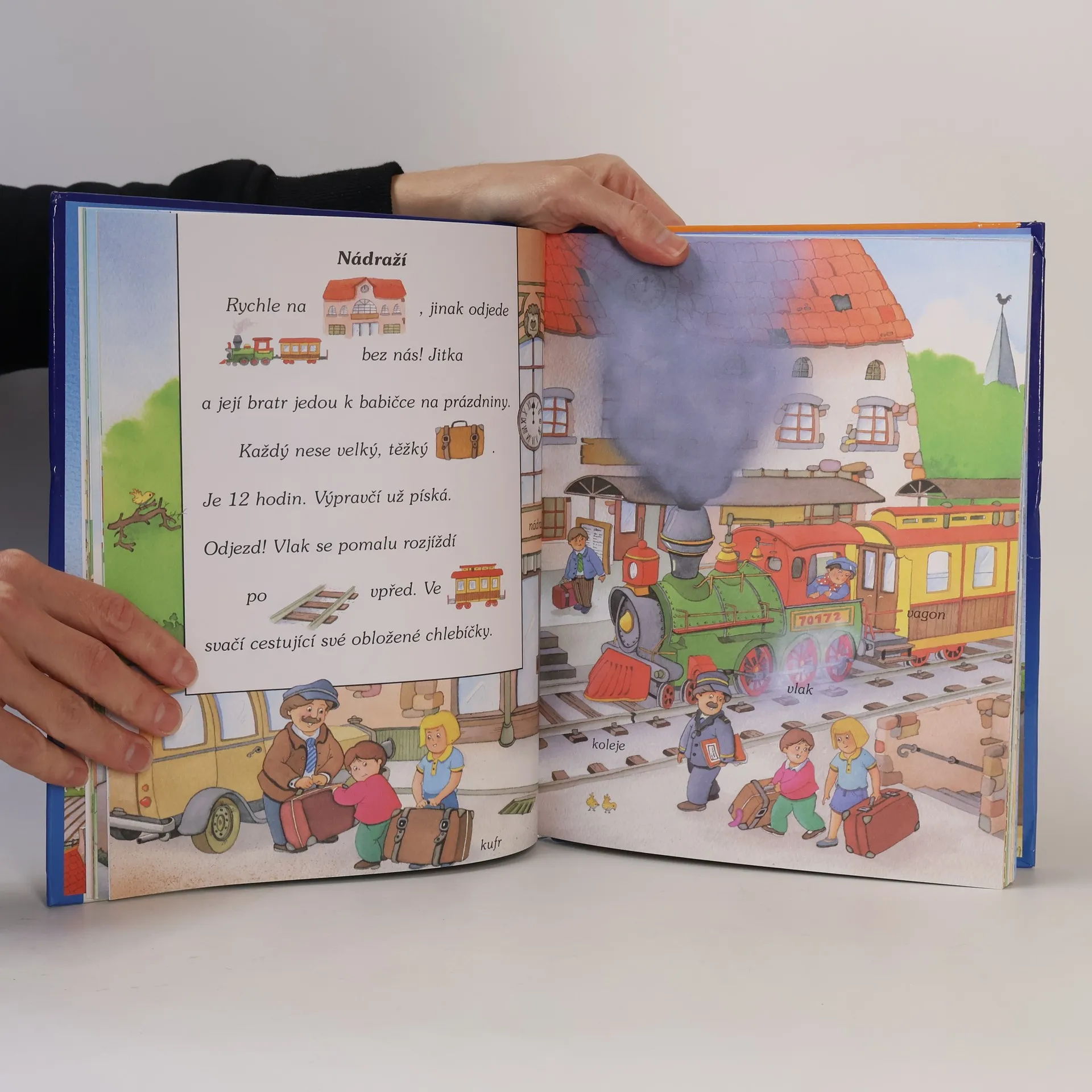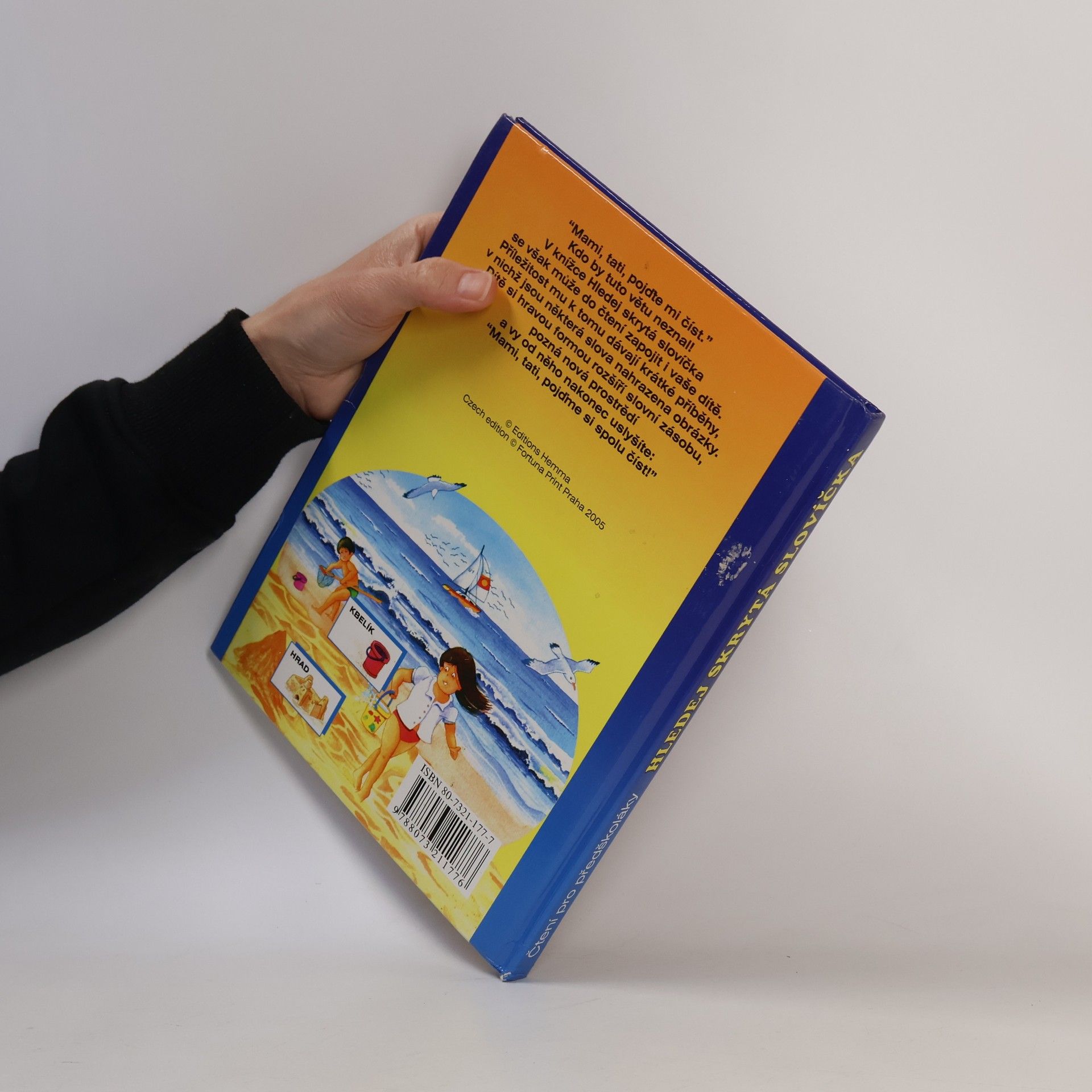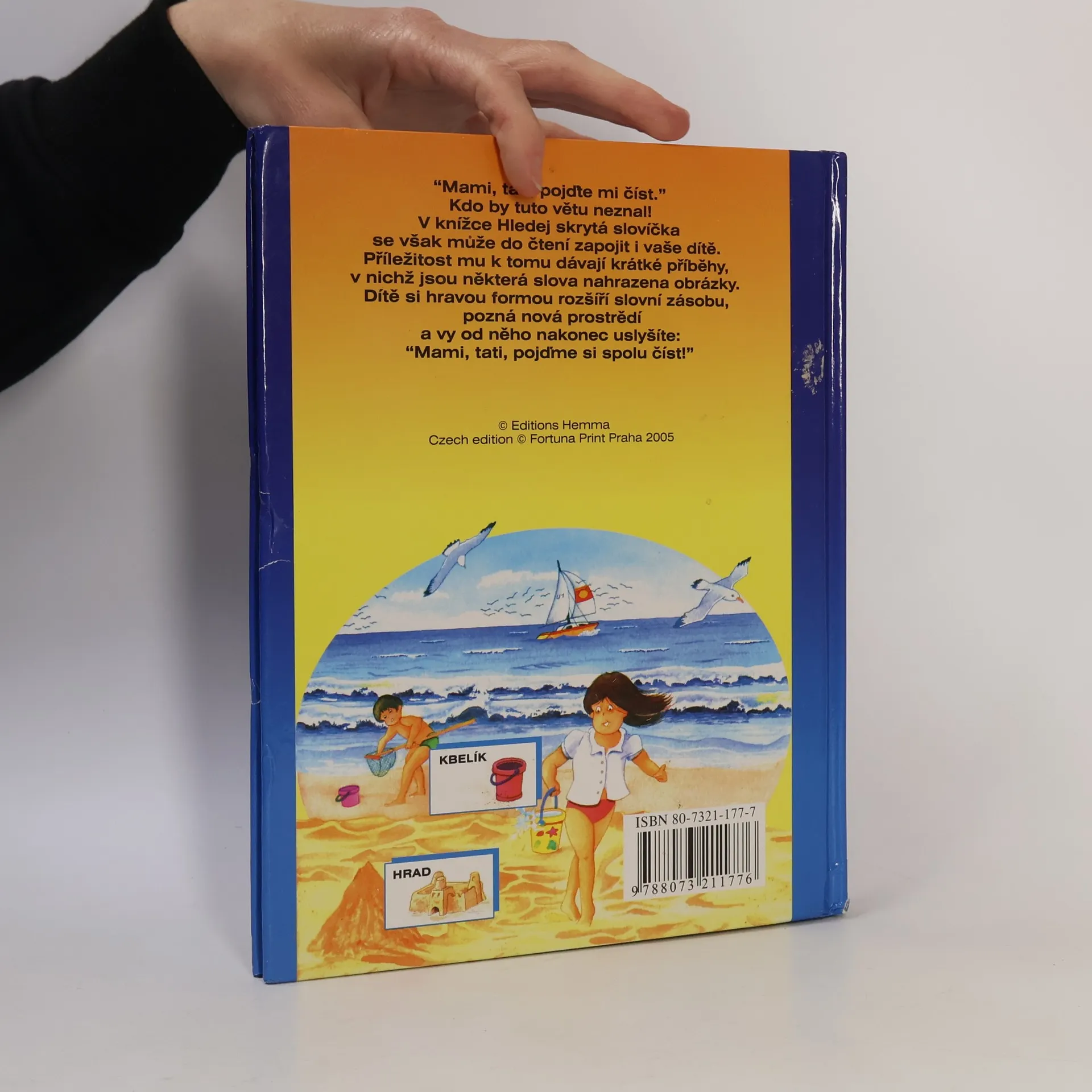 Kniha obsahuje krátké příběhy, v nichž jsou některá slova nahrazena obrázky. Dítě si hravou formou rozšíří slovní zásobu.