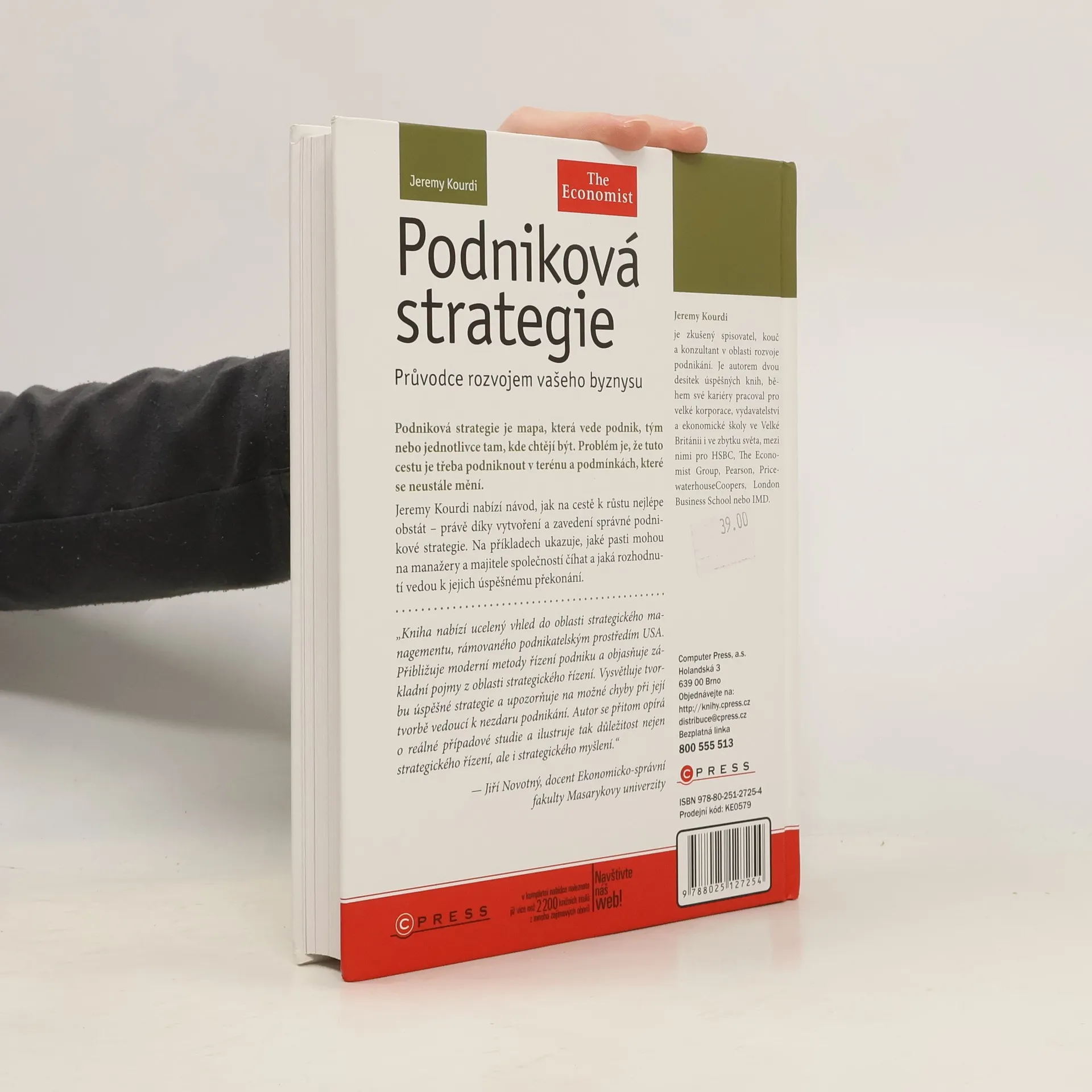 Podniková strategie je mapa, která vede podnik, tým nebo jednotlivce tam, kde chtějí být. Problém je, že tuto cestu je třeba podniknout v terénu a podmínkách, které se neustále mění. Jeremy Kourdi nabízí návod, jak na cestě k růstu nejlépe obstát – právě díky vytvoření a zavedení správné podnikové strategie. Na příkladech ukazuje, jaké pasti mohou na manažery a majitele společností číhat a jaká rozhodnutí vedou k jejich úspěšnému překonání. „Kniha nabízí ucelený vhled do oblasti strategického managementu, rámovaného podnikatelským prostředím USA. Přibližuje moderní metody řízení podniku a objasňuje základní pojmy z oblasti strategického řízení. Vysvětluje tvorbu úspěšné strategie a upozorňuje na možné chyby při její tvorbě vedoucí k nezdaru podnikání.Autor se přitom opírá o reálné případové studie a ilustruje tak důležitost nejen strategického řízení, ale i strategického myšlení.“ – Jiří Novotný, docent Ekonomicko-správní fakulty Masarykovy univerzity Jeremy Kourdi je zkušený spisovatel, kouč a konzultant v oblasti rozvoje podnikání. Je autorem dvou desítek úspěšných knih, během své kariéry pracoval pro velké korporace, vydavatelství a ekonomické školy ve Velké Británii i ve zbytku světa, mezi nimi pro HSBC, The Economist Group, Pearson, PricewaterhouseCoopers, London Business School nebo IMD.