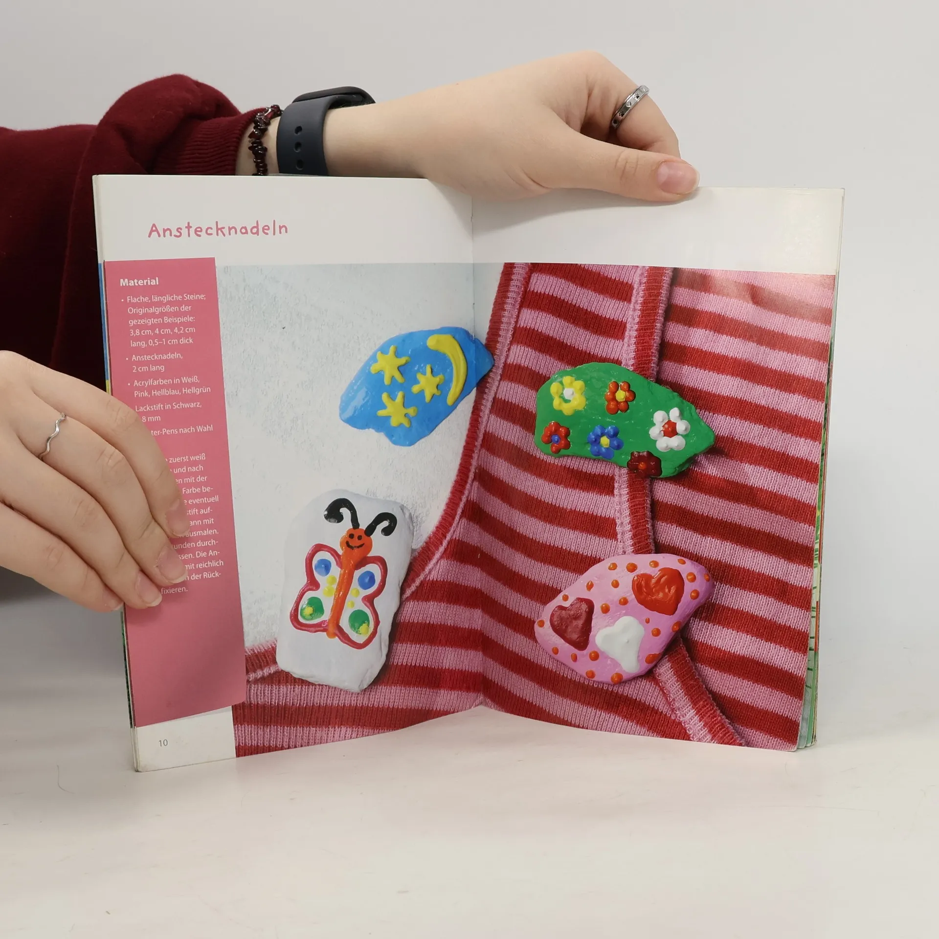 Steine sind ganz besondere Schätze der Natur: Klein, groß, rund, eckig, schmal oder pummelig – jeder ist einzigartig. Wer genau hinschaut, erkennt häufig schon eine ganz bestimmte Form, aus denen hübsche Kunstwerke herausgekitzelt werden können – mit Pinsel und Farbe, Märchenwolle und Wollresten, Papieren und Bändern. So entstehen lustige Stempelfische, Foto-Steine, Briefbeschwerer, Anstecknadeln oder Glückssteine. Das Tolle: Du kannst deinen Stein zum Basteln selber sammeln. Denn du weißt ja: Der Eintritt in die Natur ist frei.