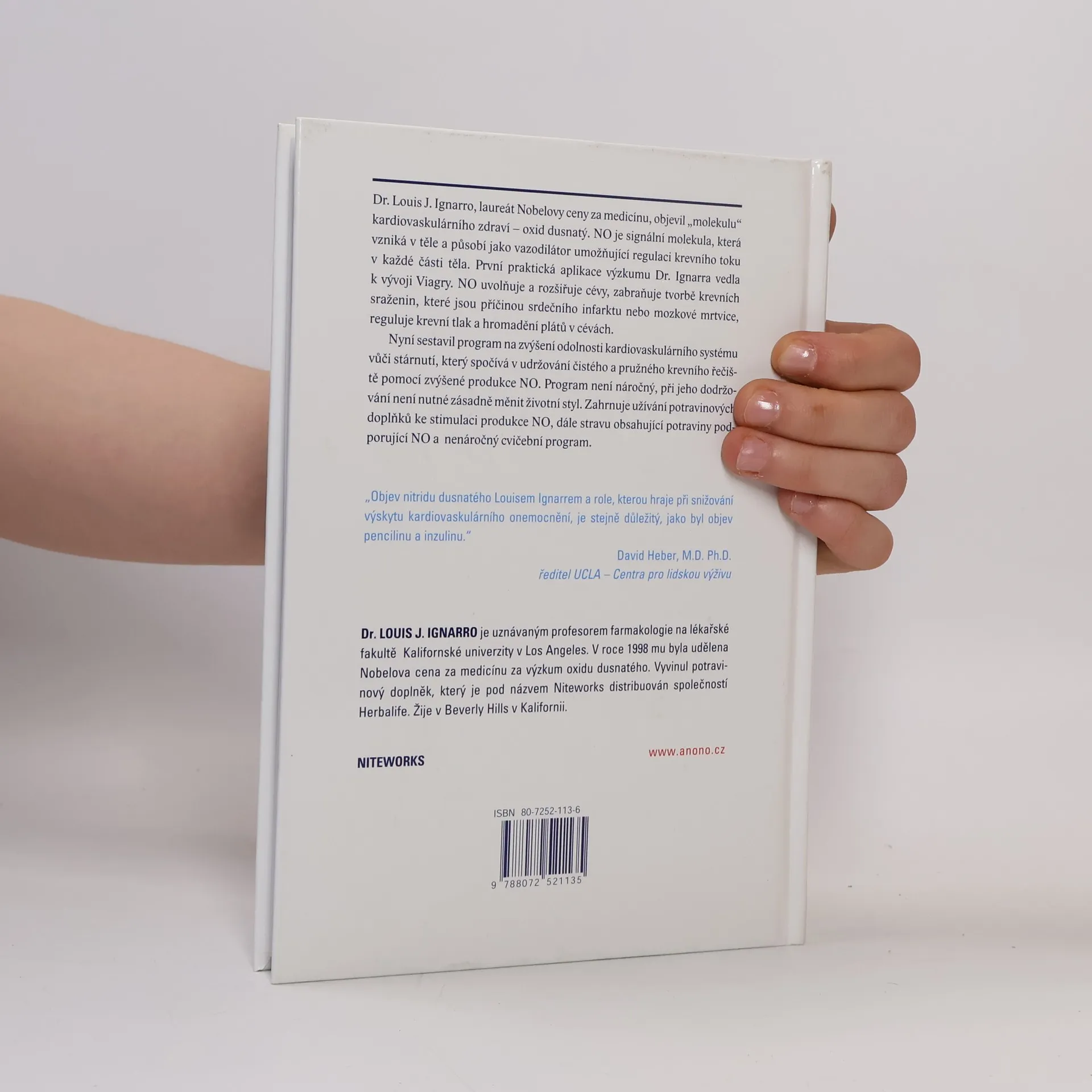Převratná kniha na téma péče o zdraví srdce i celého organismu může prodloužit život milionům lidí. Na rozdíl od mnoha příruček plných "dobrých rad", je poznání předávané v této knize potvrzeno udělením Nobelovy ceny. Dr. Ignaro nejprve důkladně vysvětluje působení oxidu dusnatého ve prospěch srdce, aby poté došel k praktickým a velice jednoduchým návodům týkajícím se životosprávy, stravy a podpůrných prostředků.