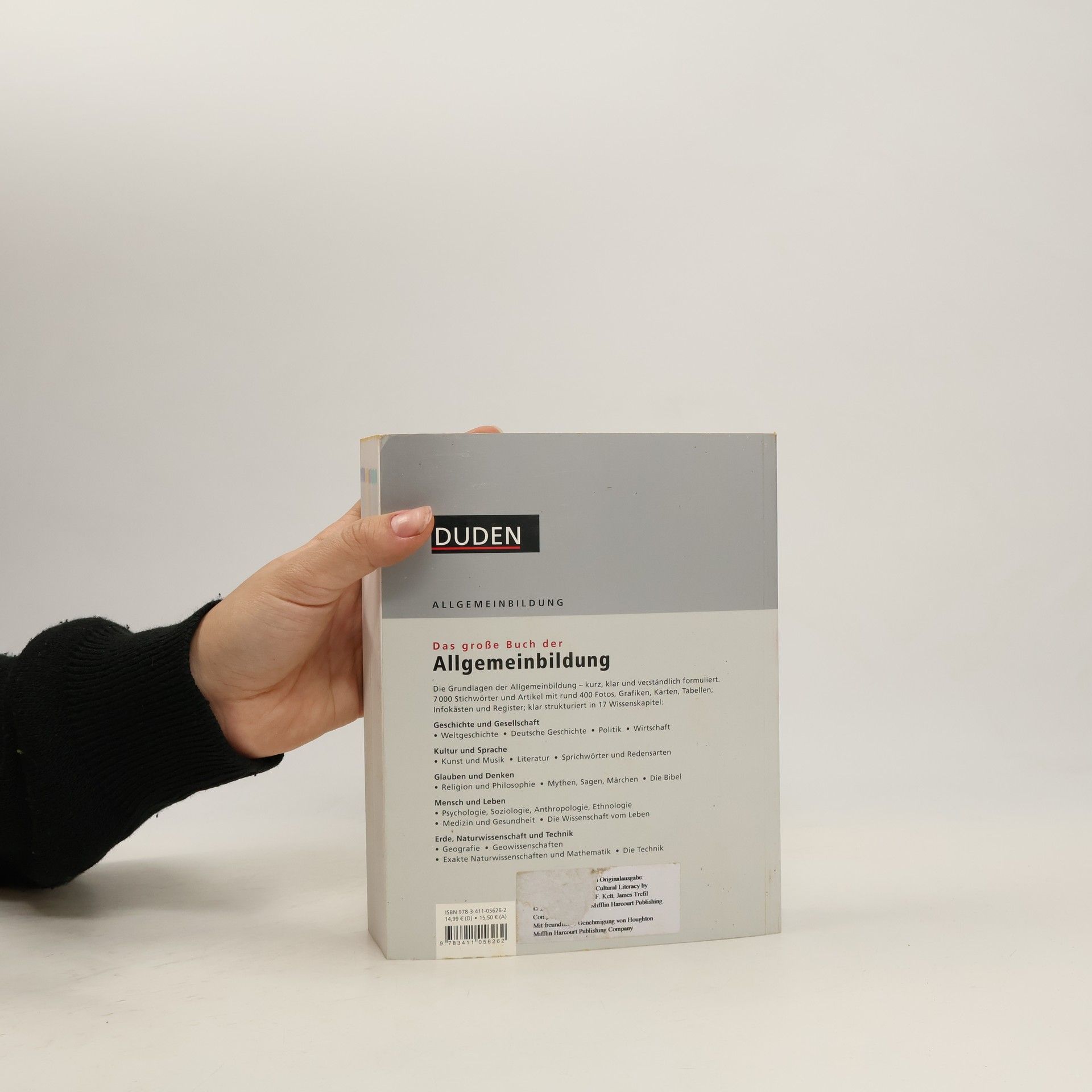 Das große Buch der Allgemeinbildung bündelt in fünf großen Wissensgebieten und 17 Kapiteln alle Daten, Fakten und Zusammenhänge, die den Grundbestand unserer Allgemeinbildung Geschichte und Gesellschaft; Kultur und Sprache; Glauben und Denken; Menschen und Leben; Erde, Naturwissenschaft und Technik.Neben den über 6000 Stichwörtern tragen rund 400 Fotos, Grafiken, Karten, Tabellen, Infokästen und Register zu einer verständlichen und anschaulichen Darstellung bei.