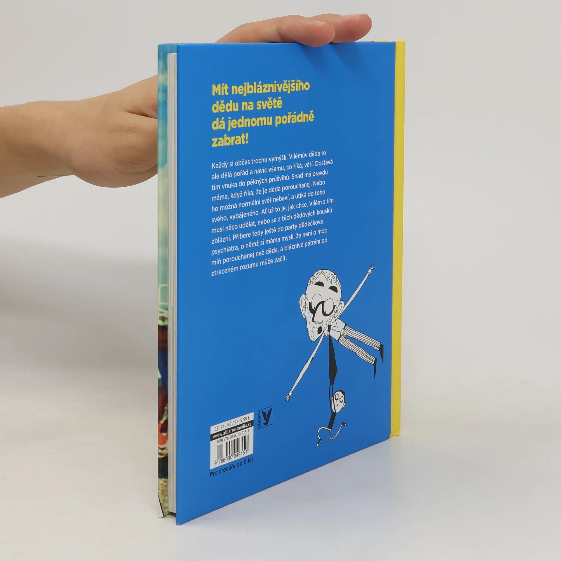 Každý z nás si občas trochu vymýšlí. Vilémův děda to ale dělá pořád, a navíc všemu, co říká, sám věří. Zrovna nedávno se musela celá rodina kvůli jednomu z jeho šílených nápadů odstěhovat, aby sousedi dědovi nezvalchovali hřbet, nenatrhli úsměv nebo alespoň nepocuchali ofinu. Řekli byste možná, že teď dá děda chvíli pokoj, ale kdepak. Už zase řádí a tahá chudáka Viléma do dalšího průšvihu. Snad má pravdu máma, když říká, že je děda porouchanej. Nebo ho možná normální svět nebaví, a proto utíká do toho svého, vybájeného. Ať už to je, jak chce, Vilém s tím musí něco udělat, nebo se z těch dědových kousků zblázní. Přibere tedy ještě do party dědečkova psychiatra doktora Pavlíka, o němž si máma myslí, že není o moc míň porouchanej než děda, a bláznivé pátrání po ztraceném rozumu může začít…
