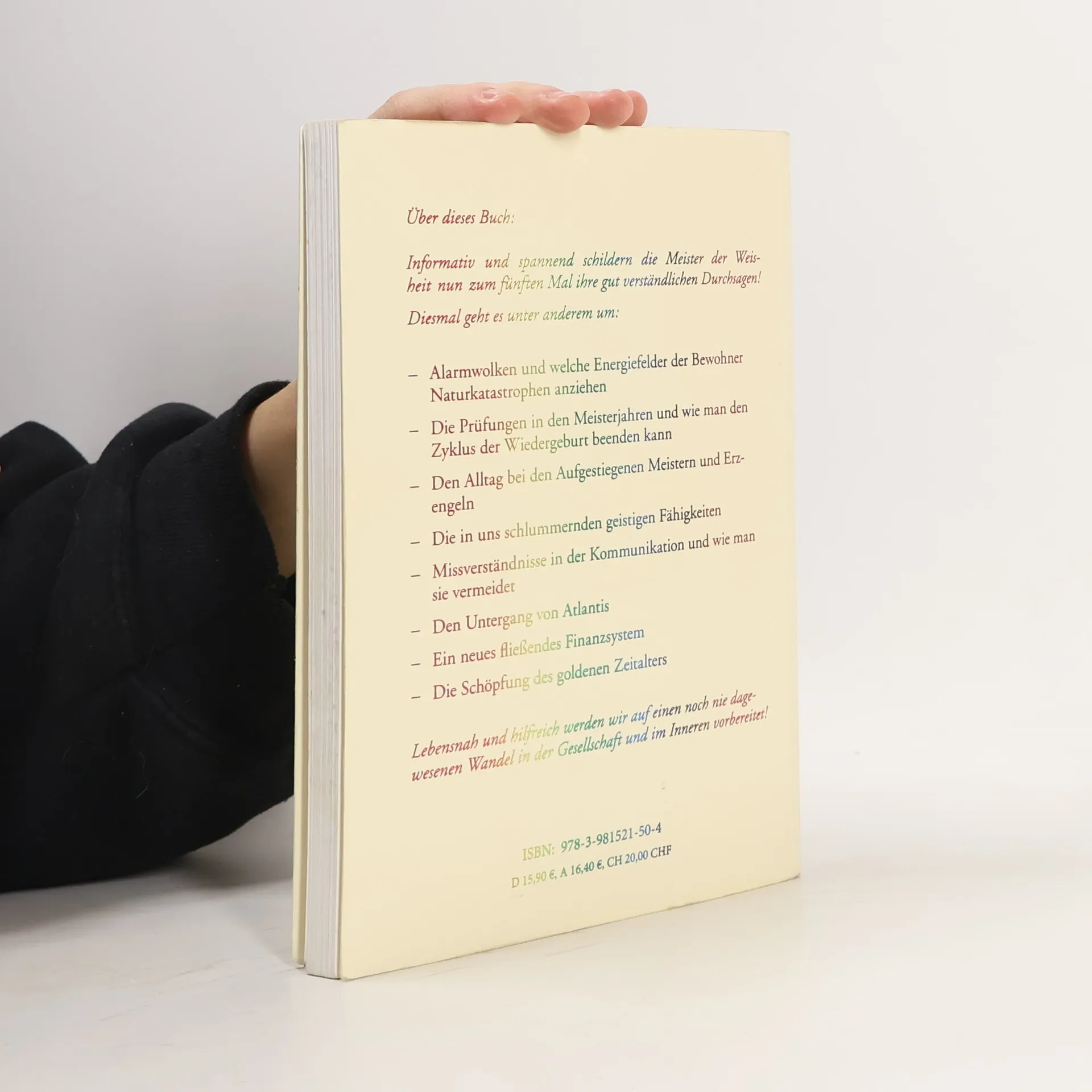Informativ und spannend schildern die Meister der Weisheit nun zum fünften Mal ihre gut verständlichen Durchsagen!Diesmal geht es unter anderem um:-Die Prüfungen in den Meisterjahren und wie man den Zyklus der Wiedergeburt beenden kann-Den Alltag bei den Aufgestiegenen Meistern und Erzengeln-Die in uns schlummernden geistigen Fähigkeiten-Missverständnisse in der Kommunikation und wie man sie vermeidet-Den Untergang von Atlantis-Ein neues fließendes Finanzsystem-Die Schöpfung des goldenen ZeitaltersLebensnah und hilfreich werden wir auf einen noch nie dagewesenen Wandel in der Gesellschaft und im Inneren vorbereitet!