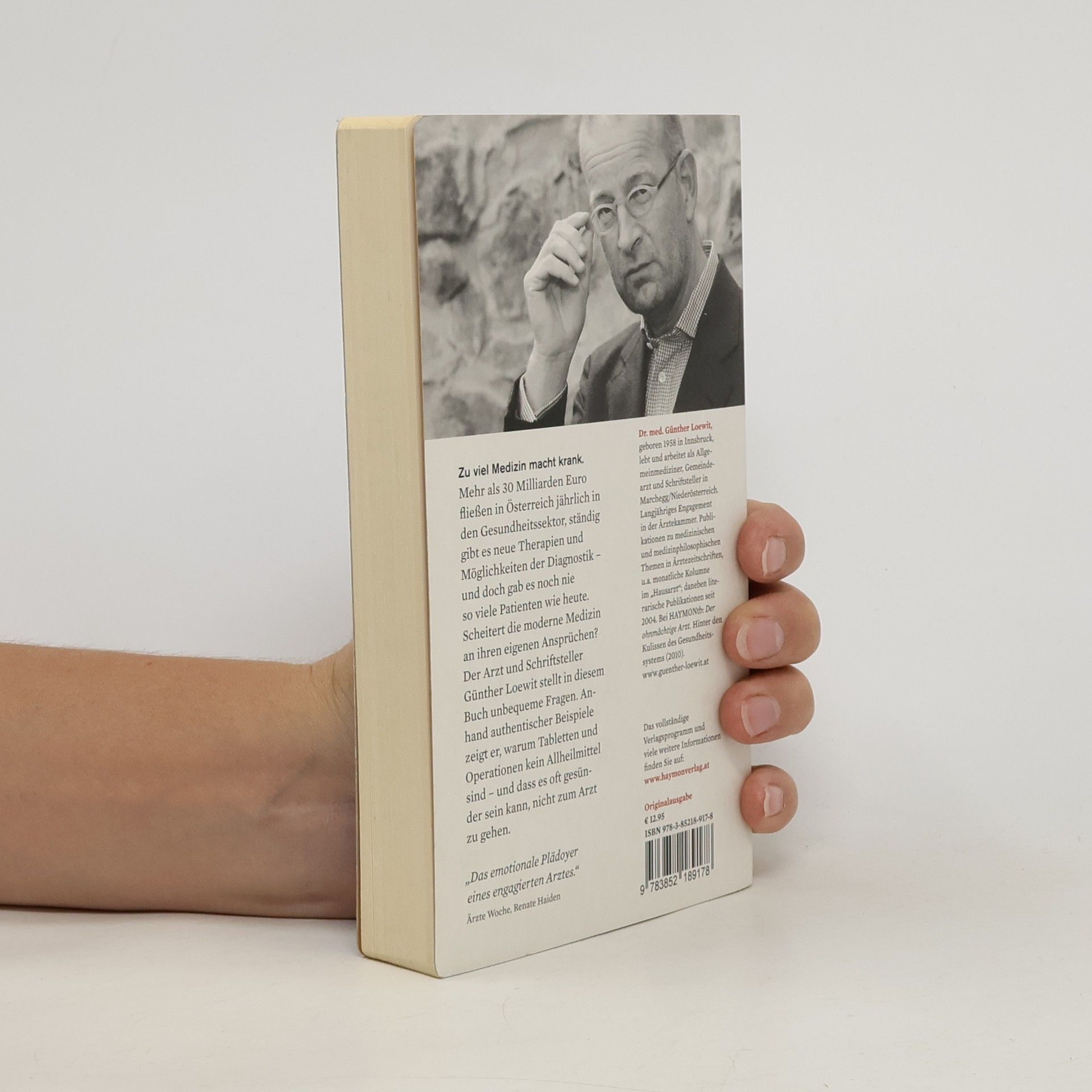 Mehr als 30 Milliarden Euro fliessen in Österreich jährlich in den Gesundheitssektor. Die Ausgaben steigen von Jahr zu Jahr um 5 % - und doch waren noch nie so viele Menschen krank wie heute. Scheitert die moderne Medizin an ihren eigenen Ansprüchen? Macht zu viel Medizin gar krank? Und wer sind die Nutzniesser dieses Systems? Der Arzt und Schriftsteller Günther Loewit stellt in seinem neuen Buch unbequeme Fragen. Anhand authentischer Beispiele zeigt er, wie gefährlich die Spirale von Medikamenten, Operationen, Diagnosen und Therapien sein kann, warum Tabletten nicht das Allheilmittel für alle Beschwerden sind - und dass es manchmal gesünder sein kann, nicht zum Arzt zu gehen.Über den Autor:Dr. med. Günther Loewit, geboren 1958 in Innsbruck, lebt und arbeitet als Allgemeinmediziner, Gemeindearzt und Schriftsteller in Marchegg/Niederösterreich. Langjähriges Engagement in der Ärztekammer. Publikationen zu medizinischen und medizinphilosophischen Themen in Ärztezeitschriften, u.a. monatliche Kolumne im "Hausarzt"; daneben literarische Publikationen seit 2004. Bei HAYMONtb: Der ohnmächtige Arzt. Hinter den Kulissen des Gesundheitssystems (2010). www.guenther-loewit.at.