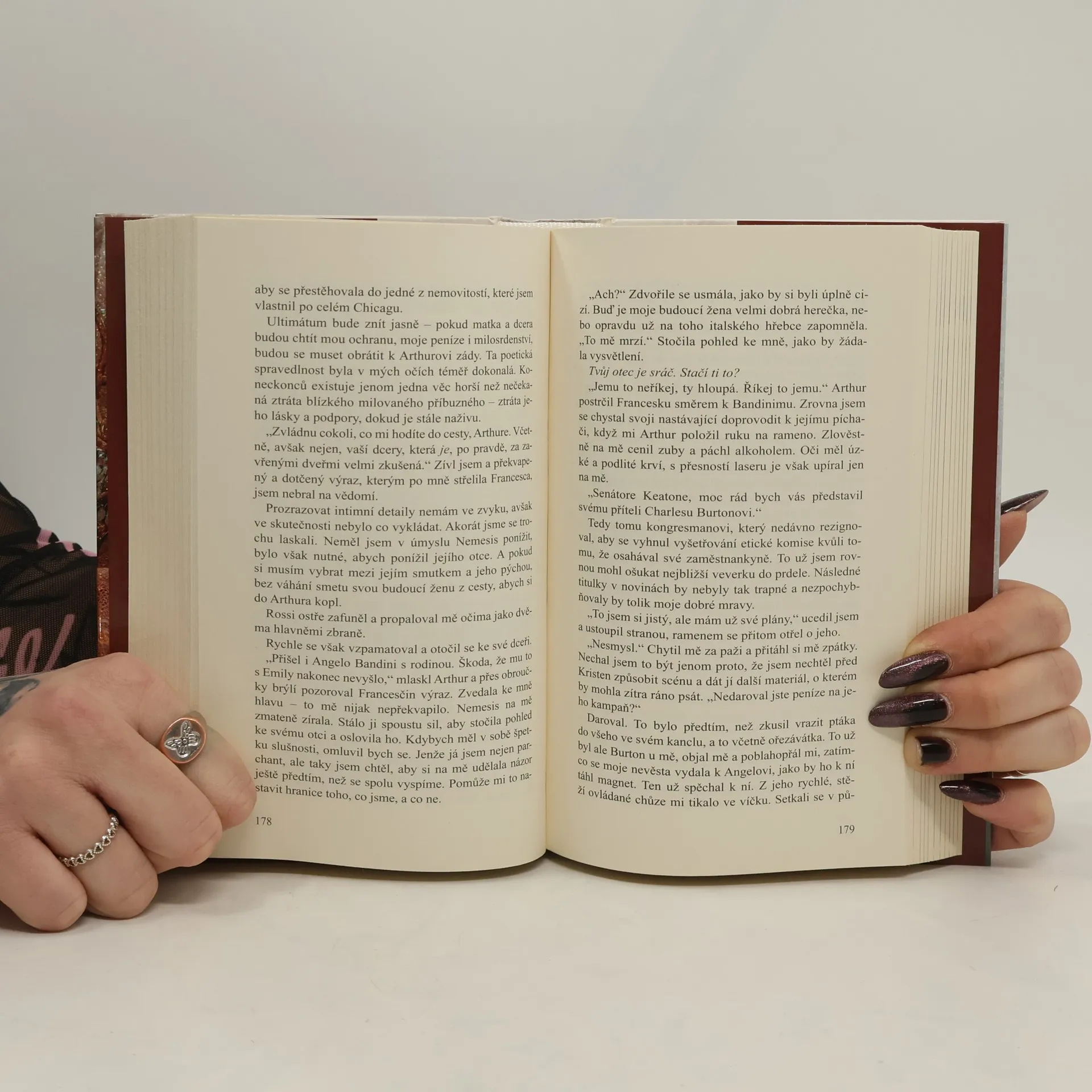 Jeden polibek. Dva muži. Tři vzájemně propletené životy. Říká se, že první polibek byste si měli zasloužit. Ten můj mi pod černou oblohou Chicaga ukradl ďábel v maškarní masce. Říká se, že svatební sliby jsou svaté. Svůj jsem porušila, než jsme vyšli z kostela. Říká se, že vám srdce bije jen pro jediného, toho pravého. Moje se rozervalo vedví a krvácelo pro dva muže, kteří o něj bojovali až do hořkého konce. Byla jsem zaslíbena Angelu Bandinimu, dědici jedné z nejmocnějších rodin chicagské mafie. Provdala jsem se však za senátora Wolfa Keatona, který mě získal jako výkupné za otcovy hříchy. A teď se musím rozhodnout, který z těch dvou mužů bude mým osudem.