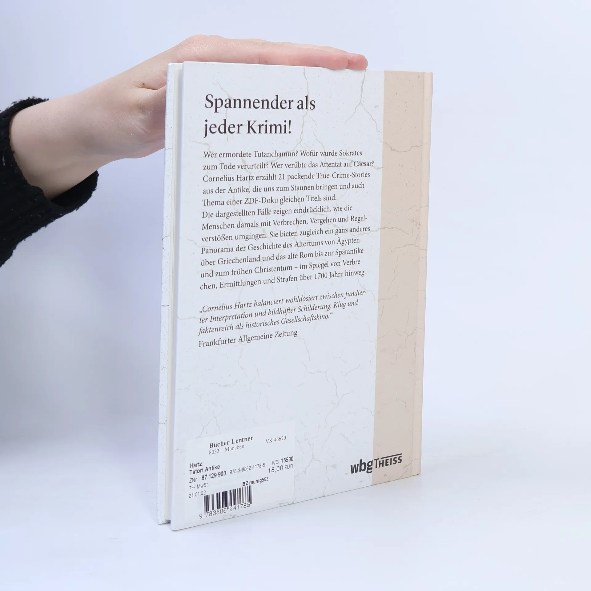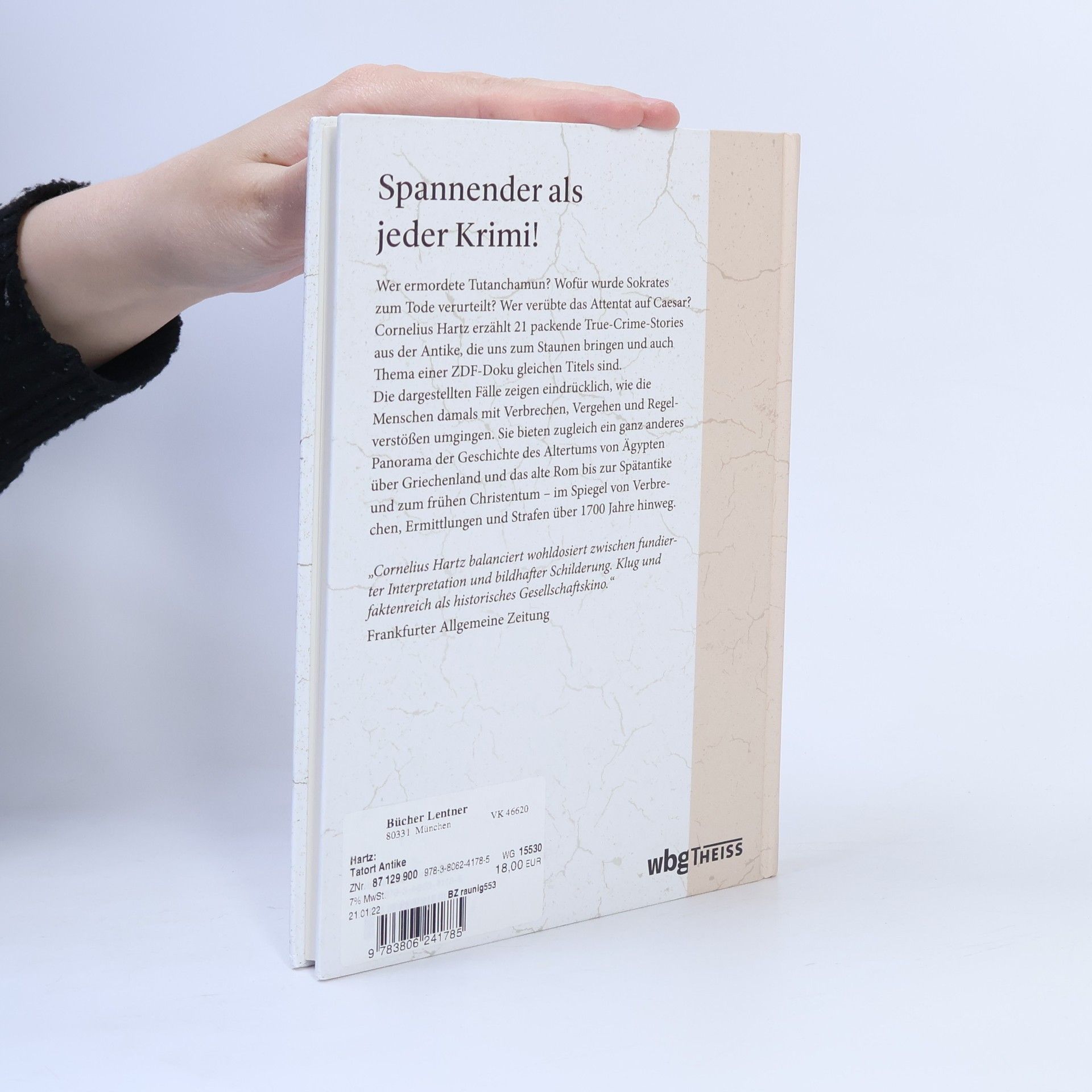 Mord und Totschlag, Raub und Diebstahl, falsche Zeugenaussagen und bestechliche Gerichte: Unser Bild von der Antike kommt ohne solche Zutaten nicht aus. Doch die Historie kann noch spannender sein als jeder Historienfilm. In diesem Buch werden 19 Verbrechen vorgestellt, die Geschichte schrieben – von Tutanchamun im alten Ägypten über Caesar und Nero bis zu Hypatia im Alexandria der Spätantike. Cornelius Hartz zeigt anhand der dargestellten Fälle exemplarisch, wie die antiken Gesellschaften mit Verbrechen, Vergehen und Regelverstößen umgingen. Er bietet durch die zeitliche und räumliche Bandbreite gleichzeitig ein mosaikartiges Panorama der Geschichte des Altertums über 1700 Jahre, mit ausgewählten Textpassagen aus antiken Quellen in neuer Übersetzung.
